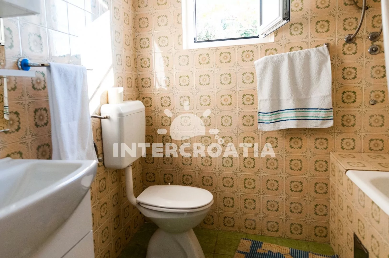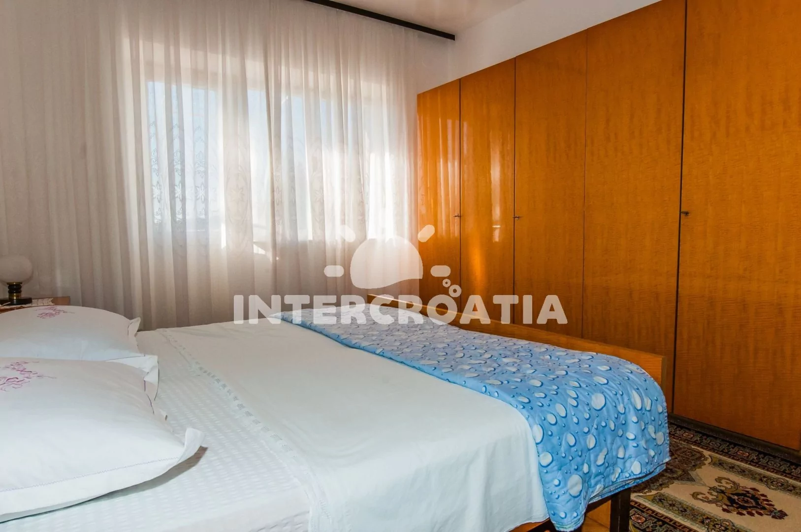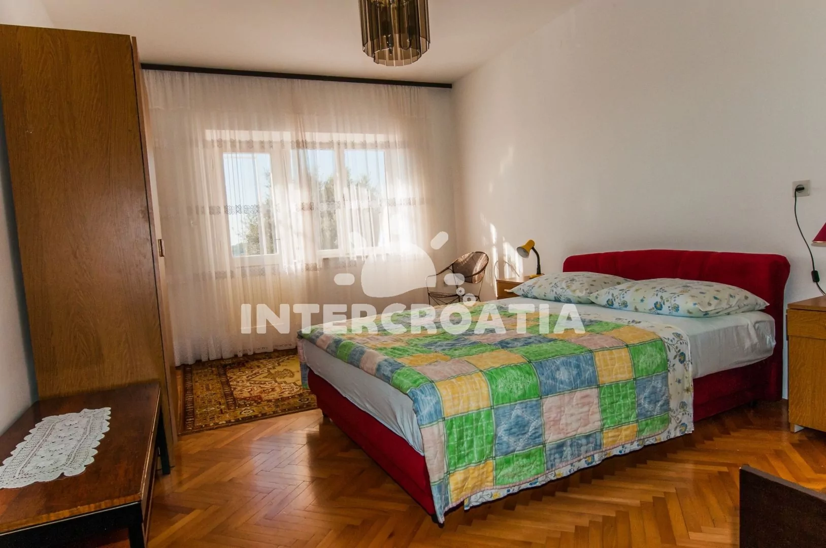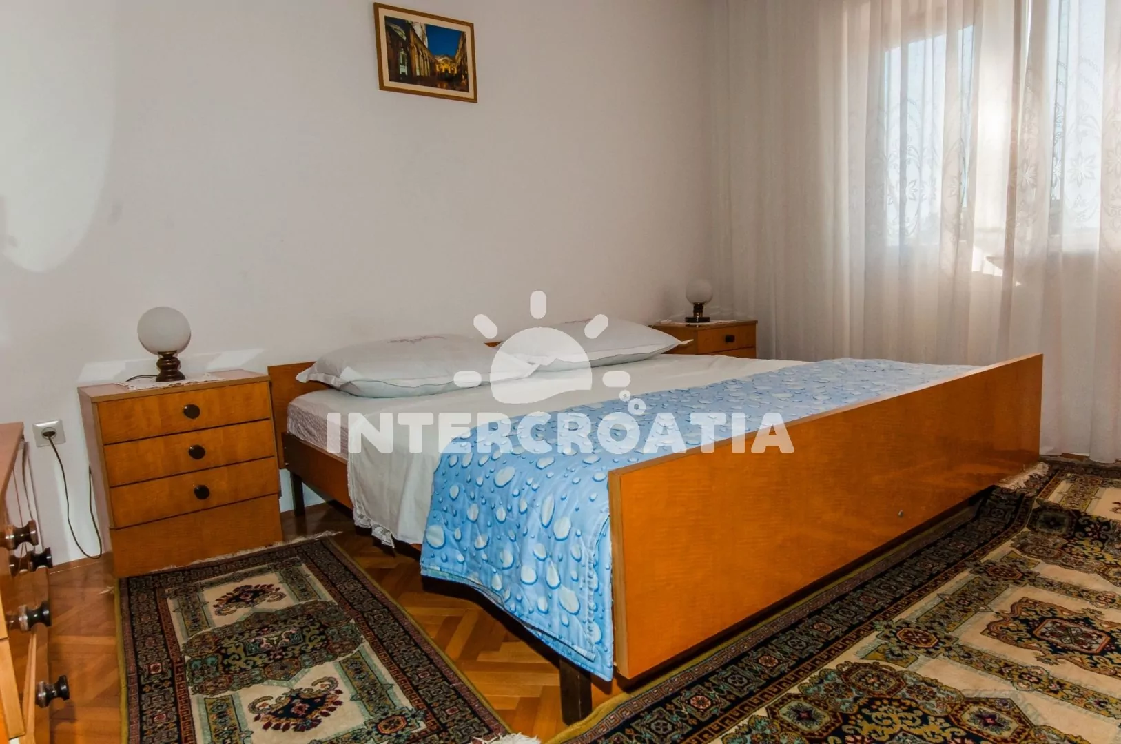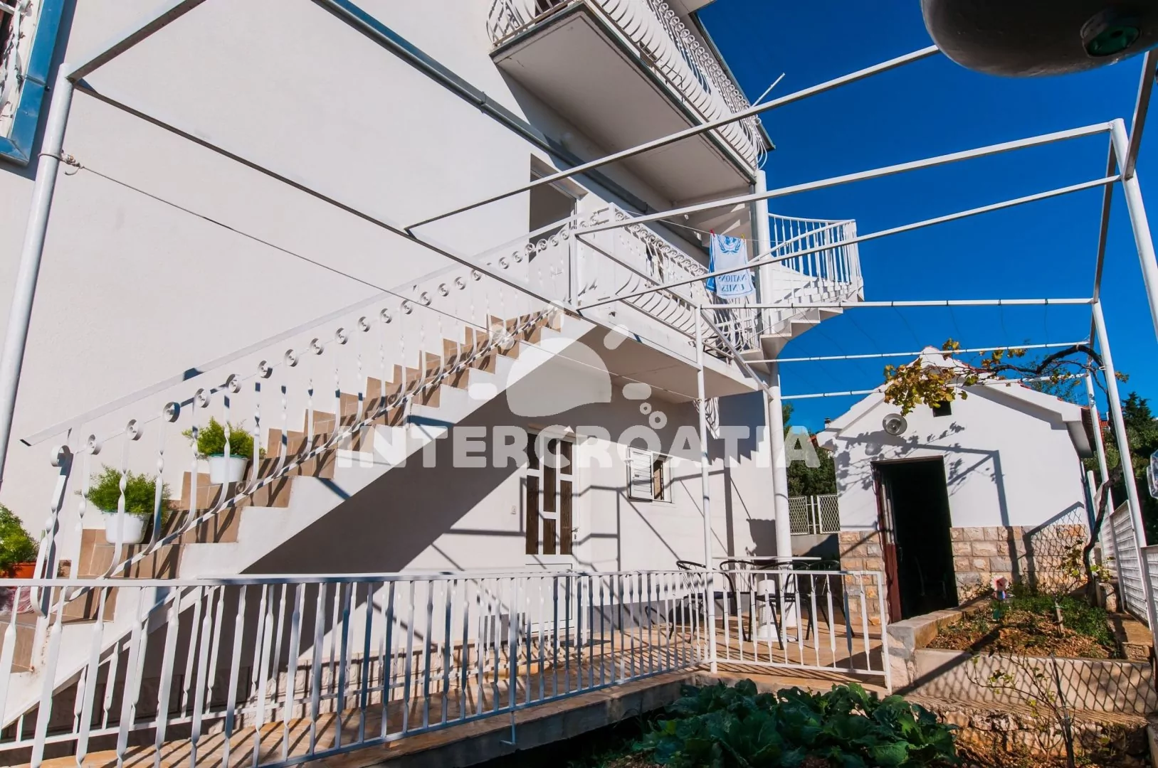 Apartmán (70 m2) s výhledem na moře a terasou s venkovním posezením se nachází v přízemí domu a je vhodný pro 6 až 7 osob. Kuchyň je vybavena jídelním stolem pro 6 osob, televizí se satelitním programem, kuchyňskou linkou se sporákem, troubou, kávovarem, nádobím a lednicí s mrazákem. Tři samostatné ložnice. První ložnice s jedním dvoulůžkem a jednou přistýlkou. Druhá a třetí ložnice, vždy s jedním dvoulůžkem. Koupelna se sprchou, umyvadlem a wc. Hostům je k dispozici parkování u objektu zdarma.