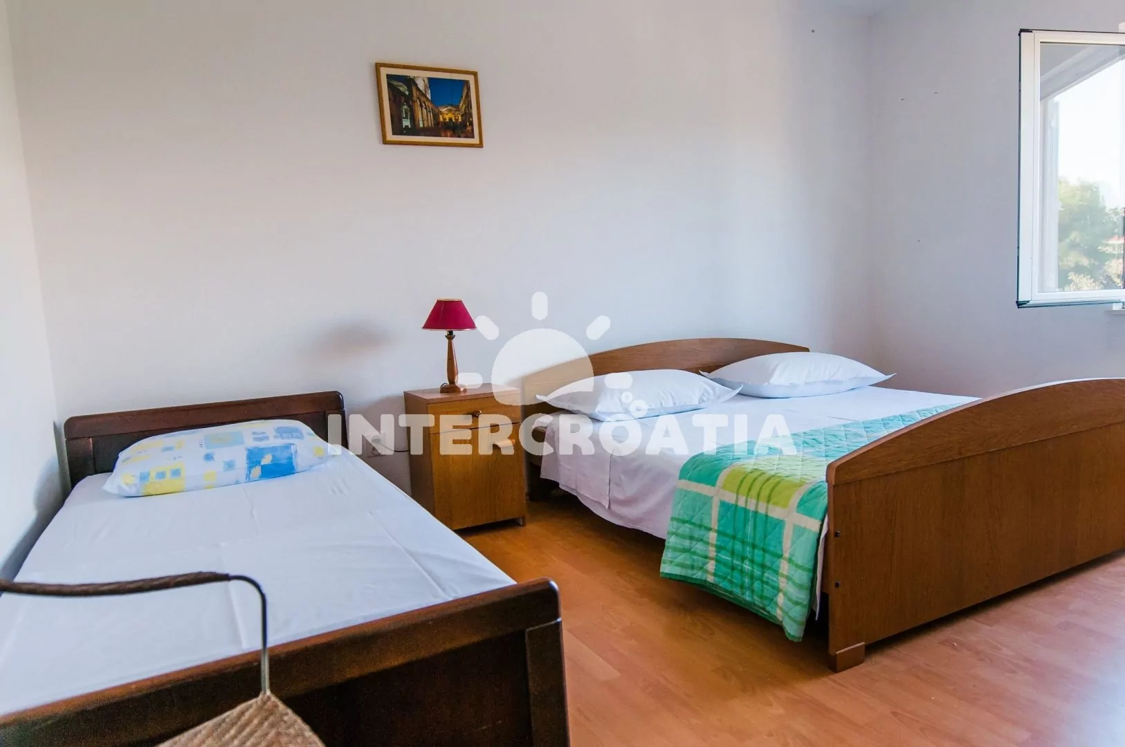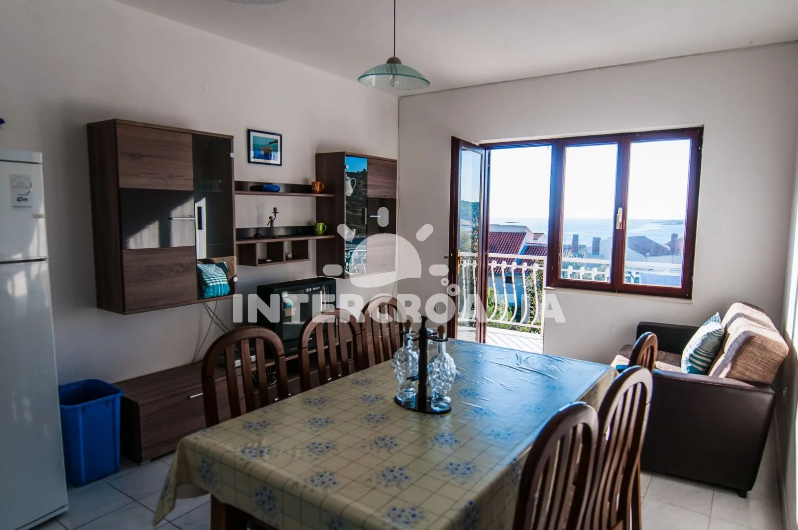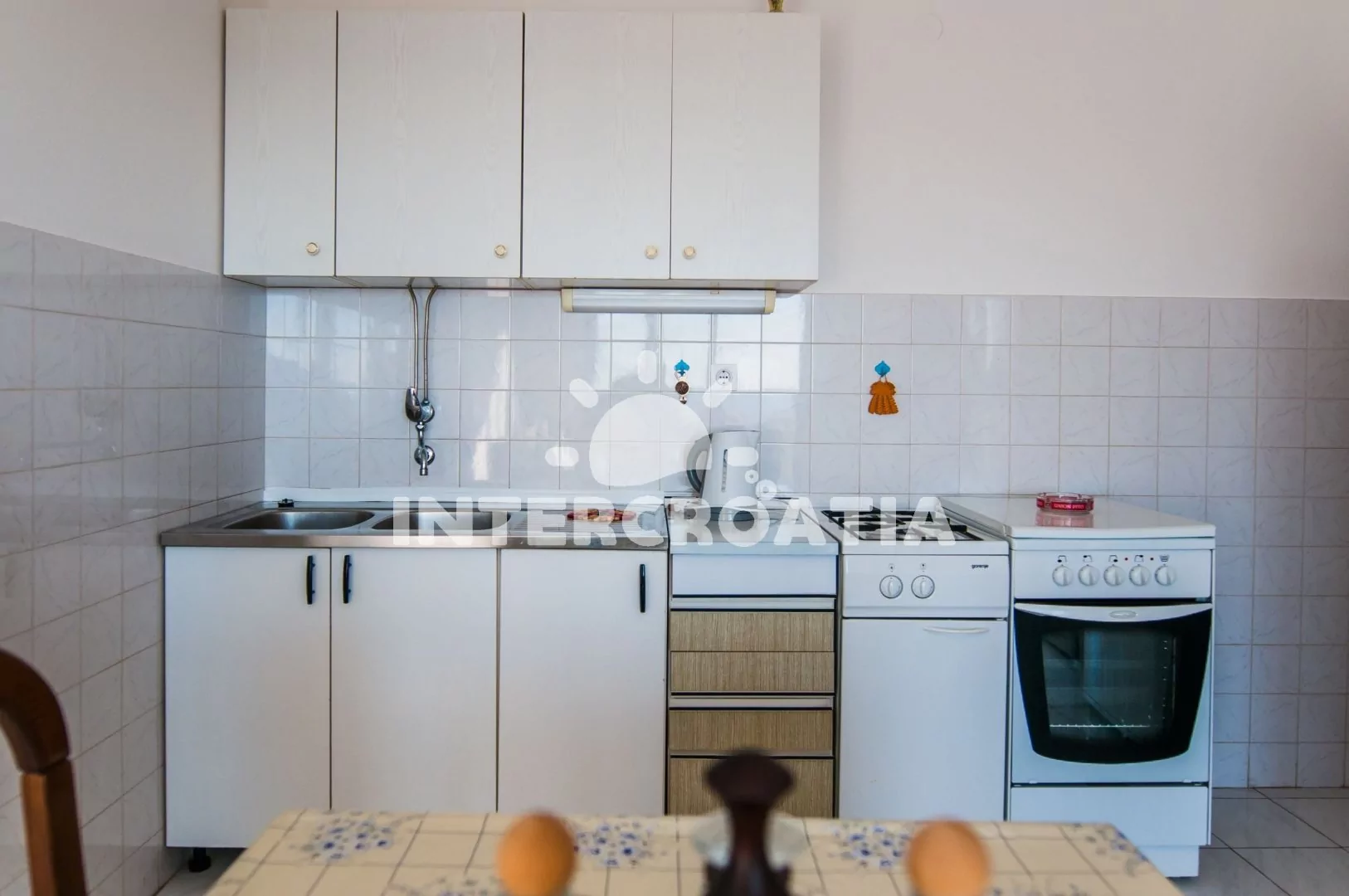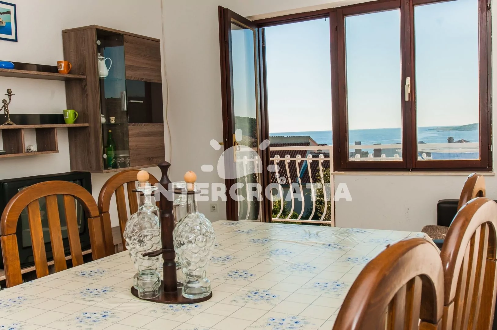 Apartmán (70 m2) s výhledem na moře a terasou s venkovním posezením, se nachází v prvním patře domu a je vhodný pro 4 až 6 osob. Obývací pokoj je spojený s kuchyní. Kuchyňská linka se sporákem, troubou, kávovarem, nádobím a lednicí s mrazákem. Obývací pokoj s jídelním stolem pro 6 osob, pohovkou (rozložitelná na extra lůžko pro 1 osobu), televizí se satelitním programem a vstupem na terasu. První ložnice s jedním dvoulůžkem a jednou přistýlkou. Druhá ložnice s jedním dvoulůžkem. Koupelna se sprchou, umyvadlem a wc. Hostům je k dispozici parkování u objektu zdarma.