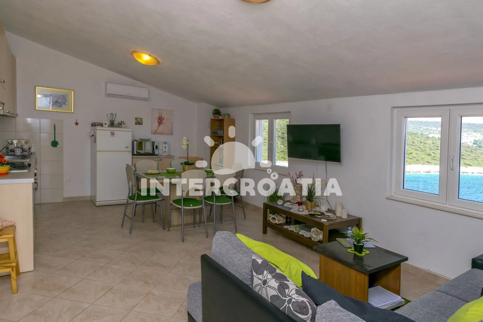 Vkusně zařízený apartmán s vlastní terasou a výhledem na moře se nachází v druhém patře domu a je vhodný pro 4 až 6 osob. Obývací pokoj je spojený s kuchyní. Kuchyňská linka je vybavena sporákem,…