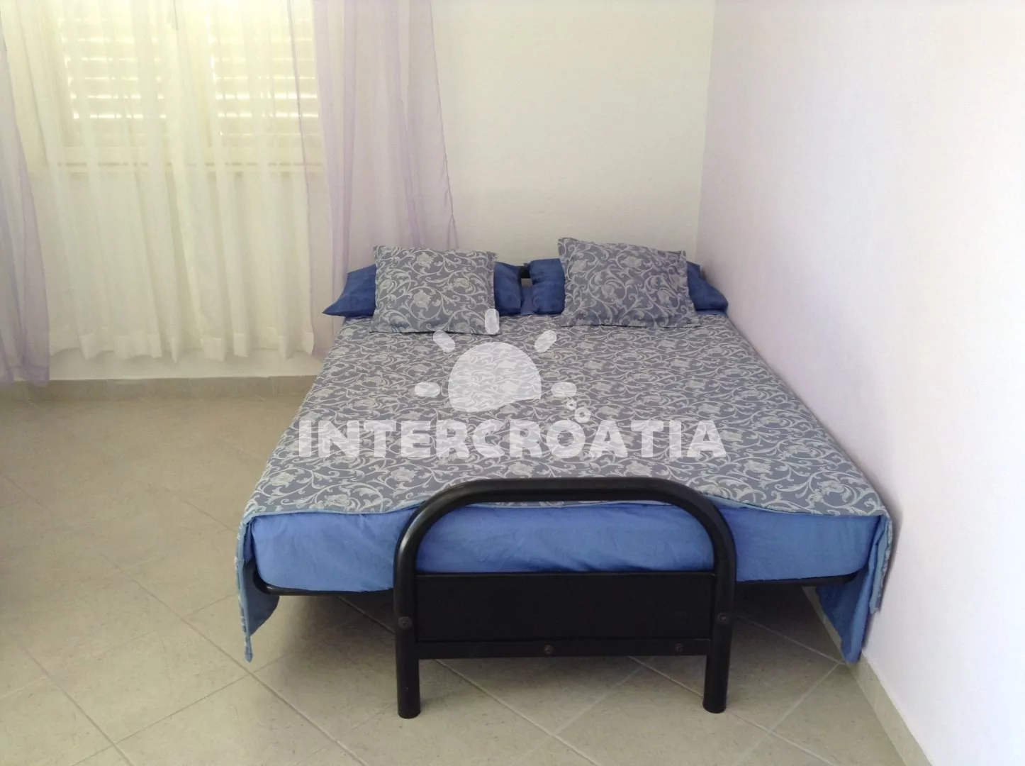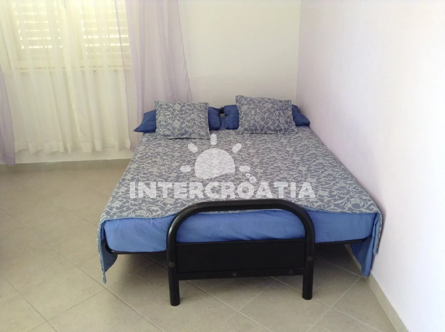 Apartmán (50 m2) s terasou a výhledem na moře, se nachází v přízemí domu. Obývací pokoj je spojený s kuchyní. Kuchyňská linka je vybavena varnou deskou, digestoří, troubou, rychlovarnou konvicí, nádobím a lednicí s mrazákem. Obývací pokoj s jídelním stolem pro 4 osoby, pohovkou (rozložitelná na extra lůžko pro 1 osobu), televizí se satelitním programem, klimatizací a vstupem na terasu. Ložnice je vybavena dvoulůžkem. Koupelna se sprchovým koutem, umyvadlem, bidetem a wc. Hostům je k dispozici parkování u objektu zdarma.