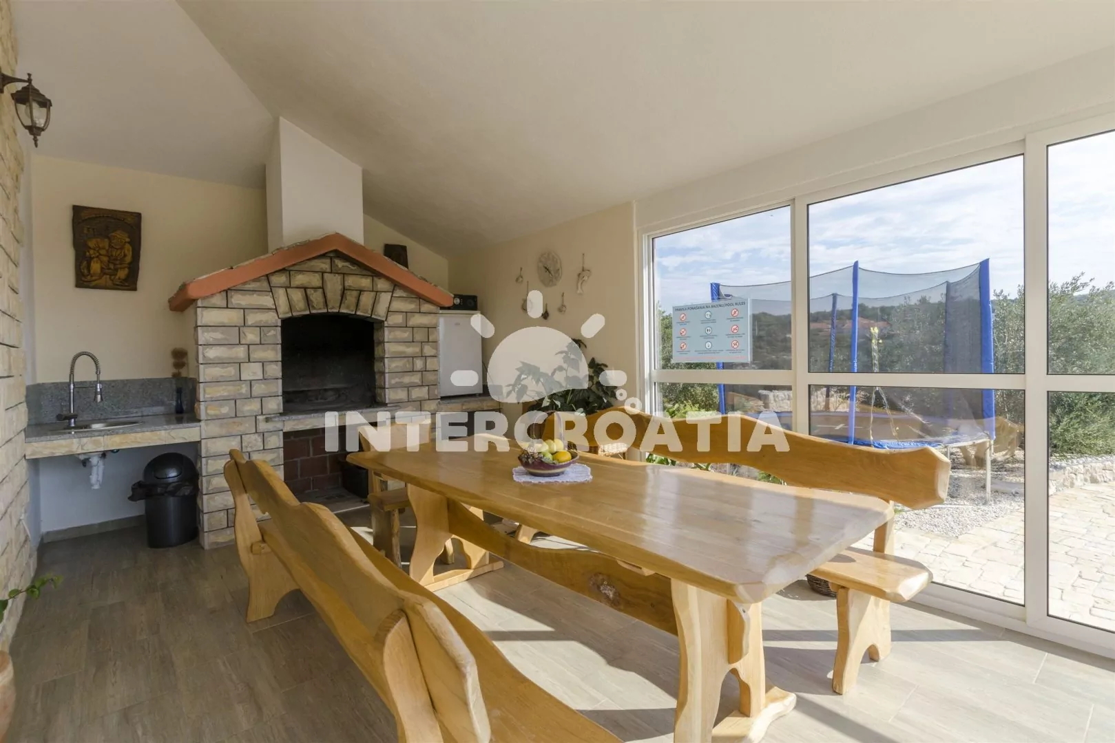 Samostatně stojící vila s pozemkem 1800 m2, se nachází ve velmi klidné lokalitě s venkovním bazénem, lehátky a slunečníky u bazénu. Velmi hezká terasa s venkovním posezením a grilem. Vila nabízí ubytování ve 2 apartmánech s nádherným panorama výhledem na přírodu a moře. Parkovací místa u vily.