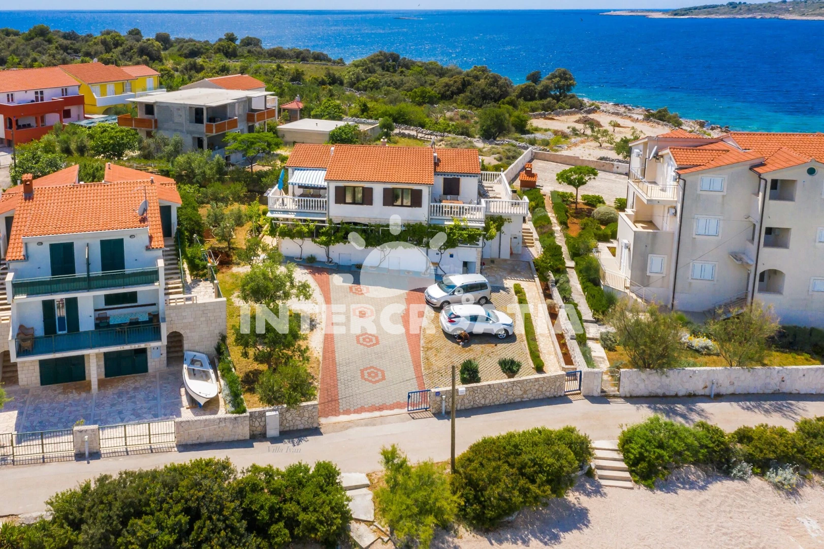 Vzdálenosti: Moře 10 m, pláž 10 m (písčitá a betonové desky), kotviště pro čluny 10 m, restaurace 50 m, bar 50 m, centrum 50 m, supermarket 2 km, potápění 3 km, veřejná doprava 4 km, lékárna 6 km, ambulance 6 km, směnárna 6 km, pošta 6 km, půjčovna motorových člunů 6 km, marina 6 km, banka 6 km, čerpací stanice 8 km, diskotéka 8 km, trajekt (Primošten) 25 km, letiště (Split) 25 km,