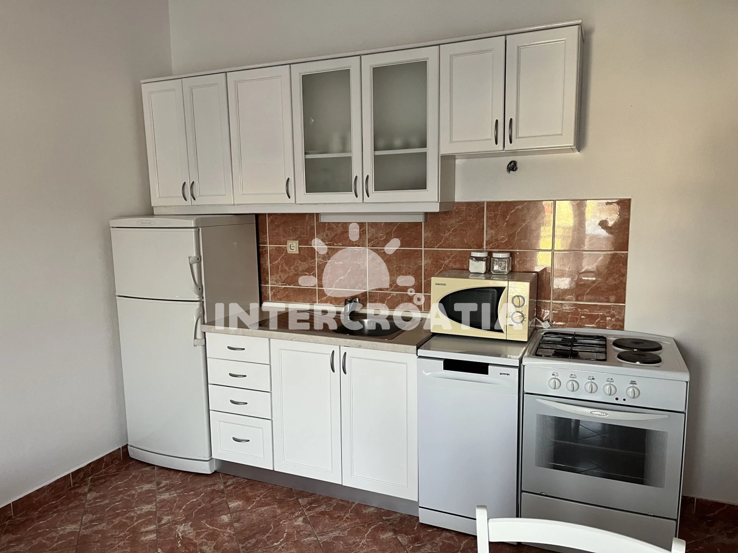 Vzdálenosti: Moře 70 m, pláž 70 m (skalnatá, oblázková a větší kamení), bar 70 m, restaurace 70 m, centrum 5 km, veřejná doprava 5 km, supermarket 5 km, lékárna 10 km, ambulance 10 km, banka 18 km, čerpací stanice 18 km, pošta 18 km, letiště (Split) 40 km, trajekt (Šibenik) 45 km,