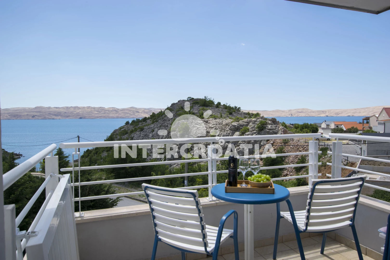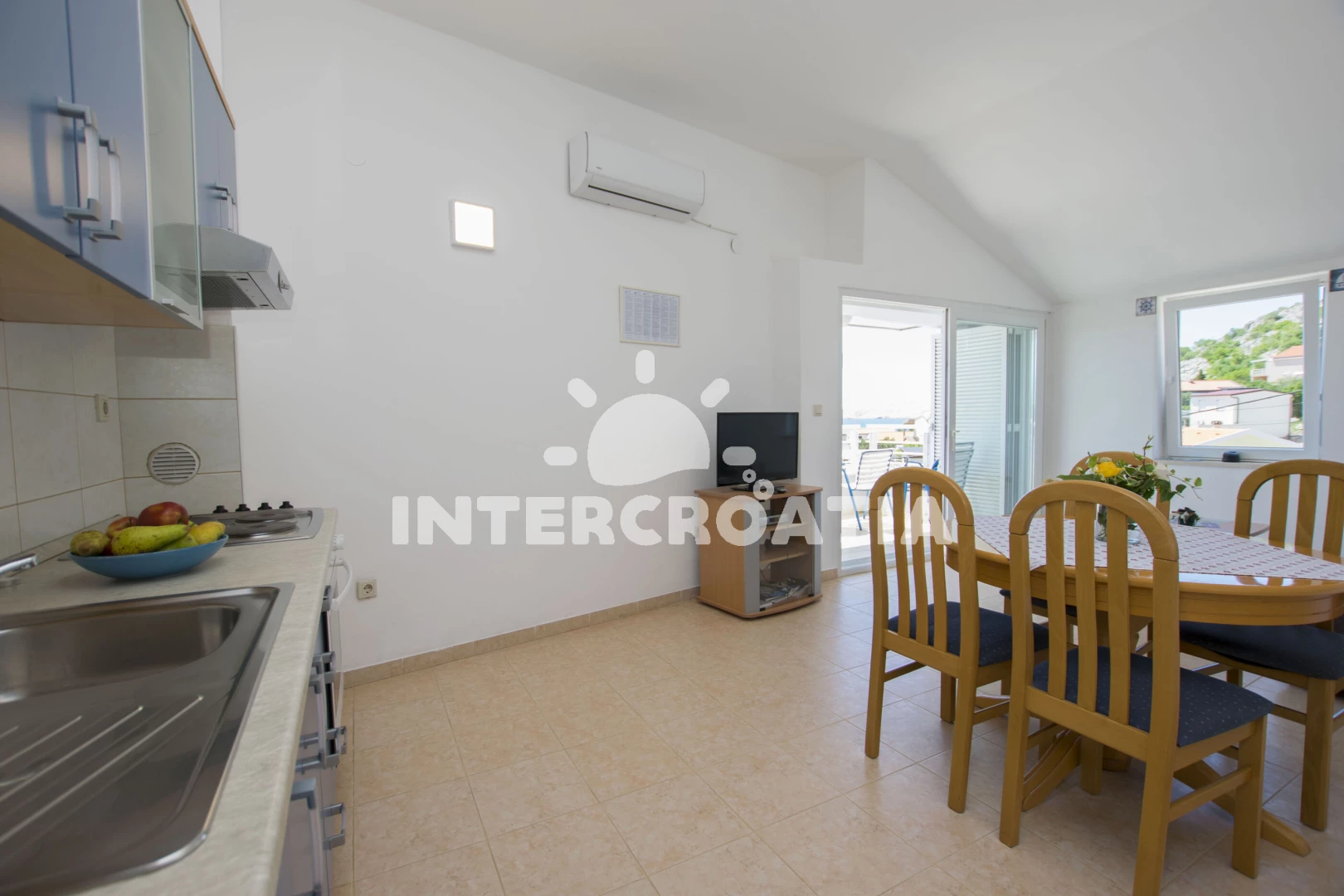 Apartmán (50 m2) s balkonem, a výhledem na moře. Nachází se ve 2. patře objektu. Apartmán má 1 ložnici a je vhodný pro až 4 osoby. Kuchyňská linka je vybavena varnou deskou, troubou, nádobím, lednicí. V obývací místnosti je rozložitelná pohovka (extra lůžko pro 2 osoby). Ložnice s dvoulůžkem. Koupelna se sprchovým koutem, umyvadlem, WC.