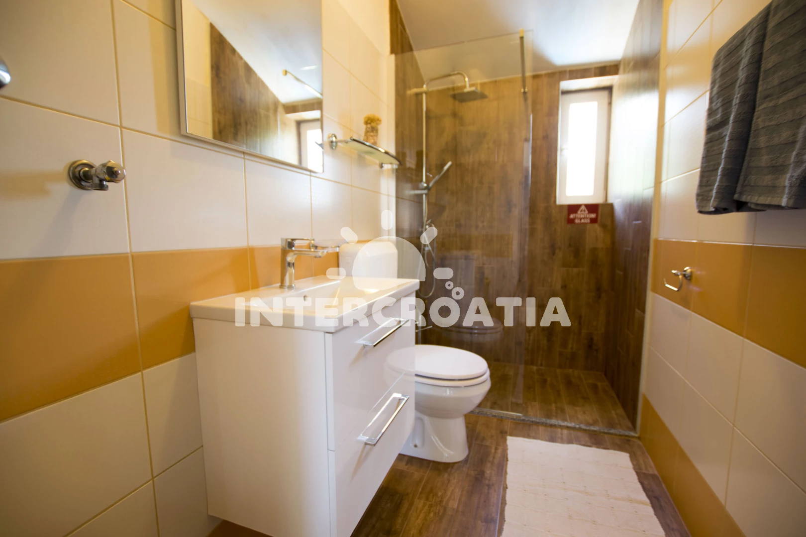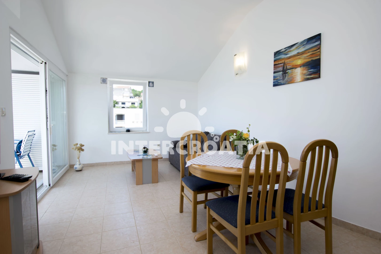 Vzdálenosti: Moře 100 m, pláž 100 m (skalnatá a oblázková), půjčovna motorových člunů 100 m, supermarket 350 m, bar 350 m, restaurace 350 m, lékárna 4 km, ambulance 4 km, čerpací stanice 4 km, centrum 5 km, trajekt (Prizna) 8 km,