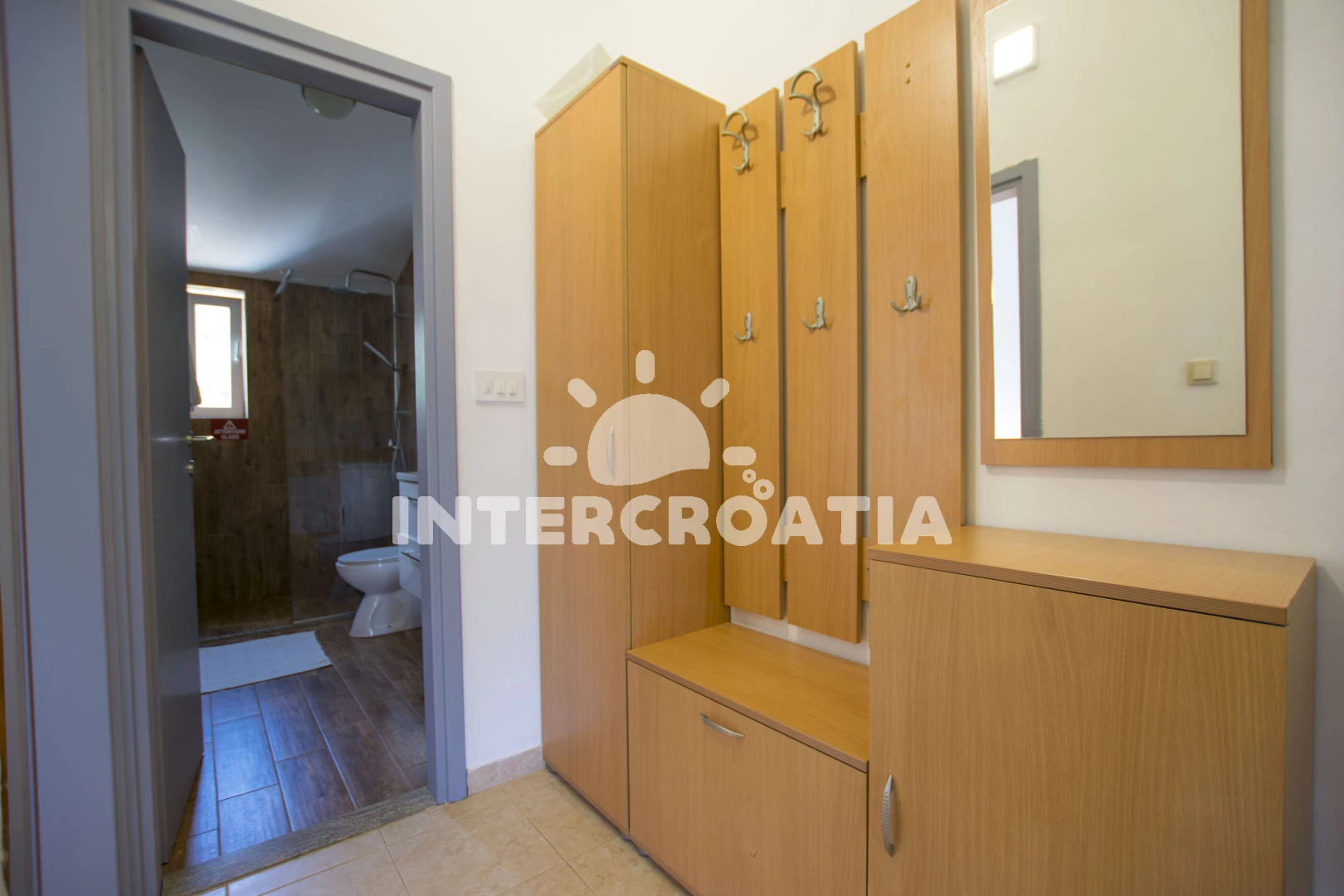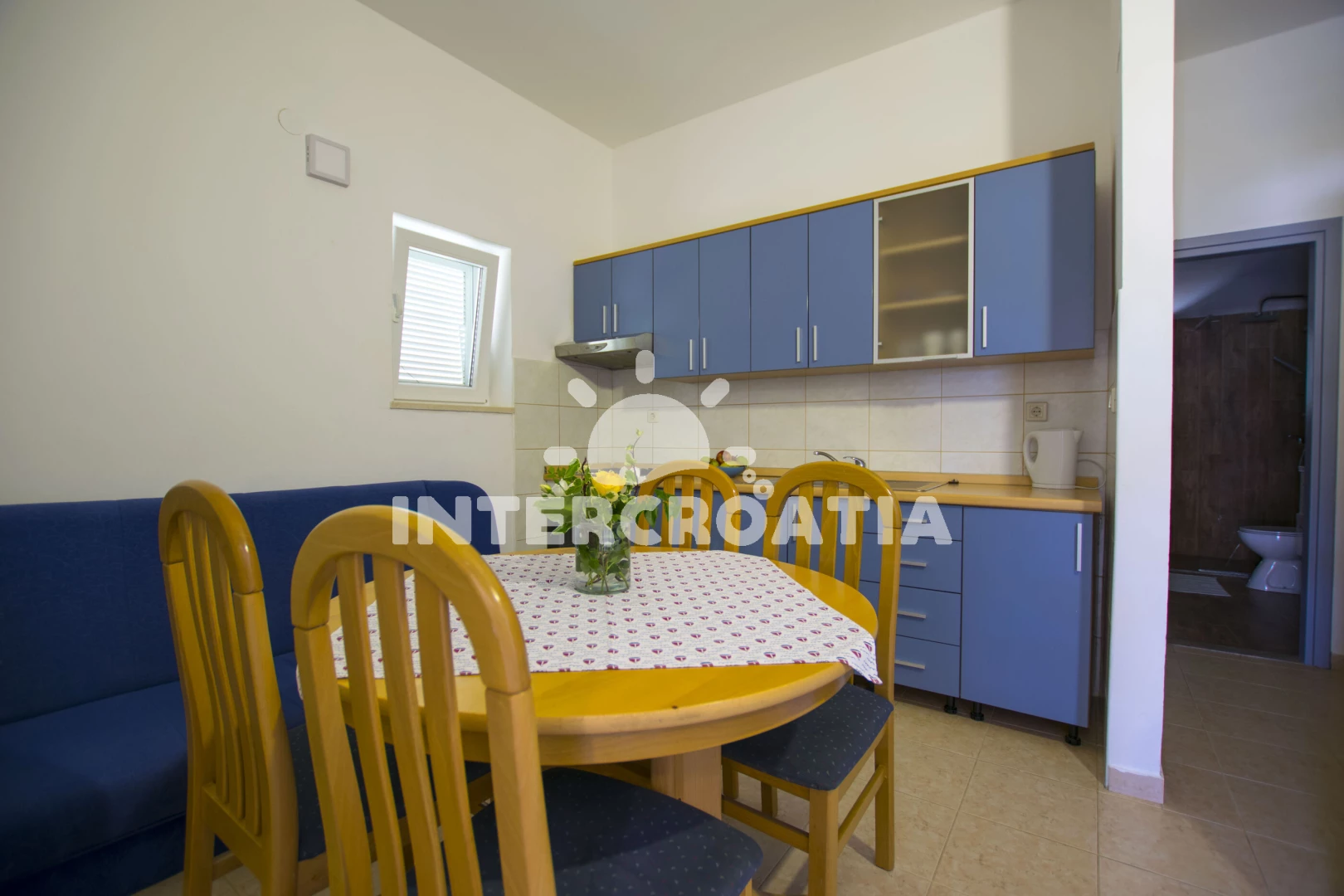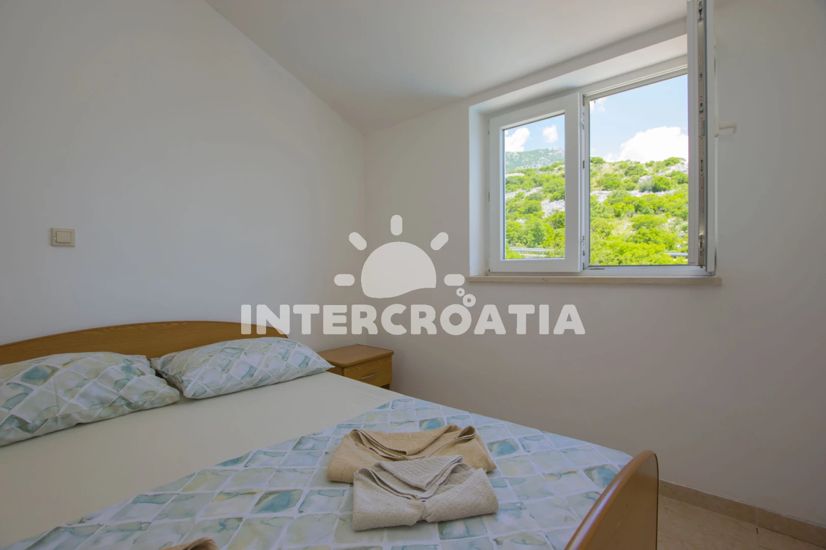Vzdálenosti: Moře 100 m, pláž 100 m (skalnatá a oblázková), půjčovna motorových člunů 100 m, supermarket 350 m, bar 350 m, restaurace 350 m, lékárna 4 km, ambulance 4 km, čerpací stanice 4 km, centrum 5 km, trajekt (Prizna) 8 km,