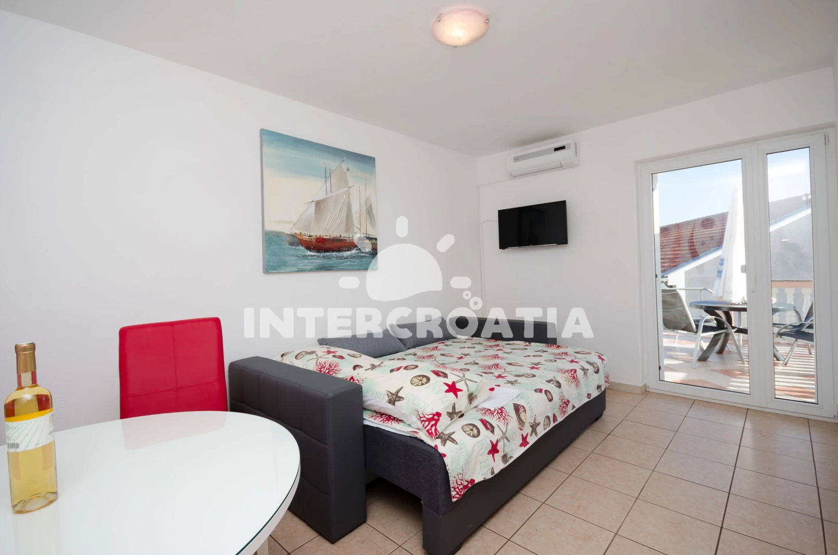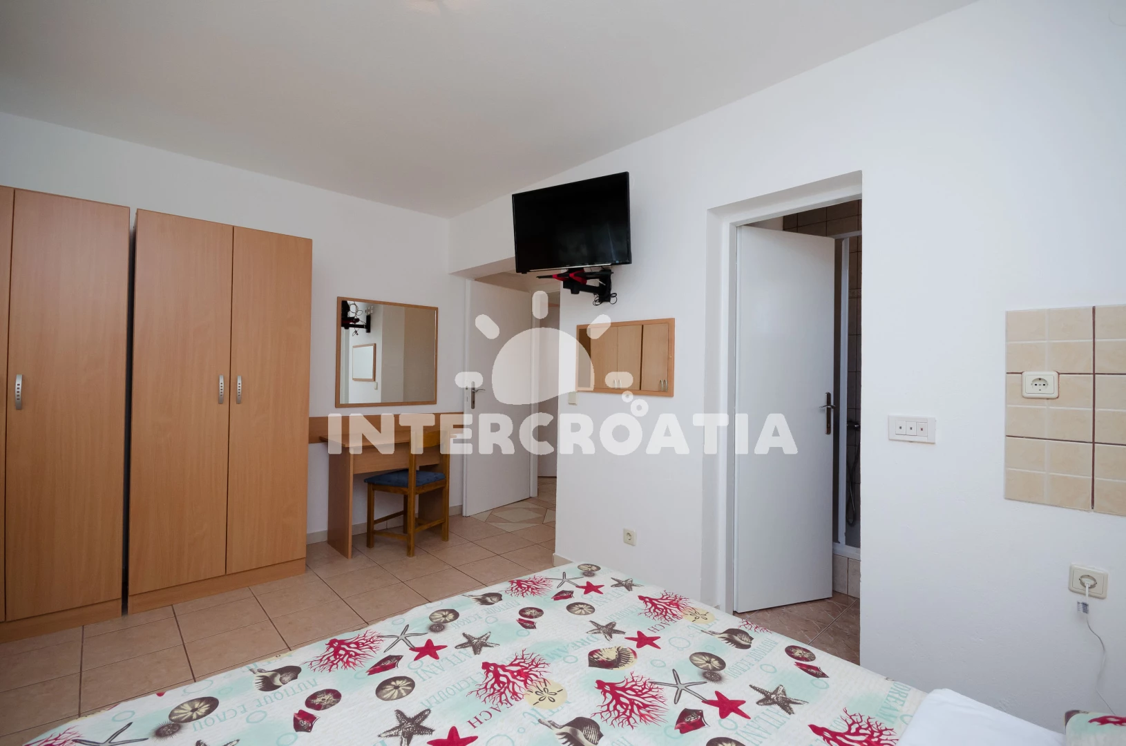 Vzdálenosti: Moře 250 m, pláž 350 m (písčitá a oblázková), čerpací stanice 100 m, restaurace 100 m, centrum 100 m, směnárna 100 m, veřejná doprava 100 m, supermarket 100 m, bar 100 m, banka 150 m, pošta 150 m, lékárna 150 m, ambulance 150 m, potápění 200 m, muzeum 200 m, diskotéka 200 m, trajekt (Prizna) 15 km, letiště (Zadar) 99 km,