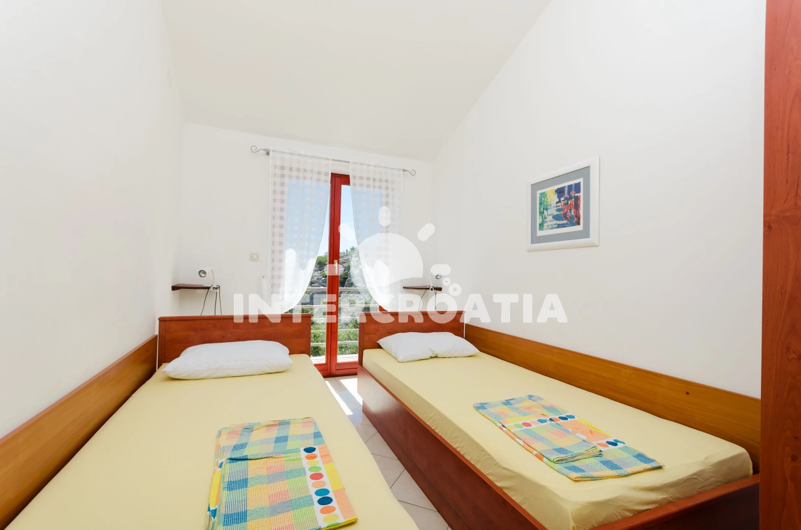 Vzdálenosti: Moře 15 m, pláž 15 m (oblázková a větší kamení), půjčovna kol 5 m, kotviště pro čluny 15 m, veřejná doprava 100 m, restaurace 100 m, bar 100 m, supermarket 300 m, pošta 6 km, potápění 6 km, diskotéka 6 km, muzeum 6 km, mini golf 6 km, banka 6 km, tenisové kurty 6 km, čerpací stanice 6 km, směnárna 6 km, ambulance 6 km, lékárna 6 km, trajekt (Prizna) 6 km, centrum 7 km, letiště (Rijeka) 110 km,