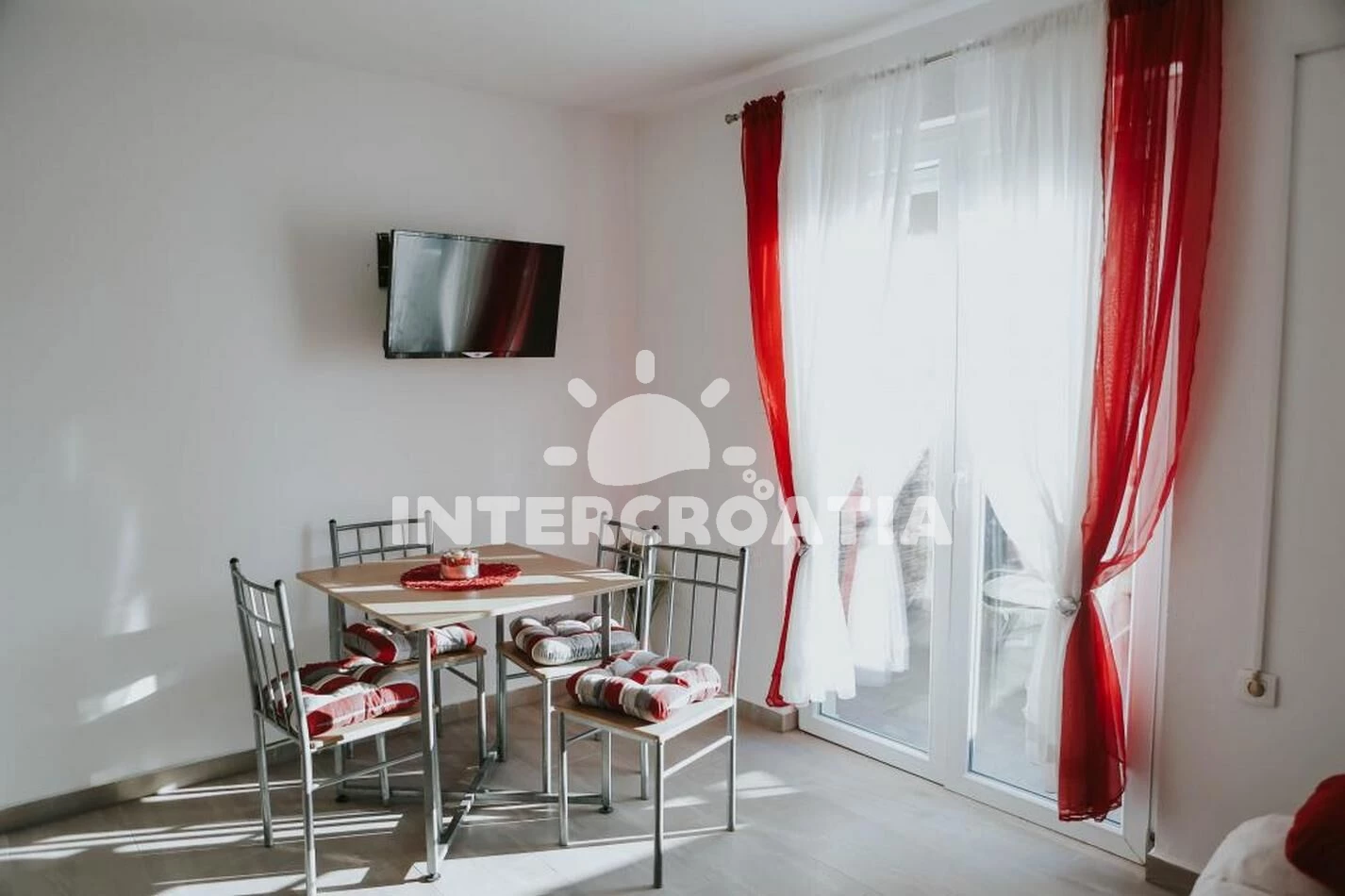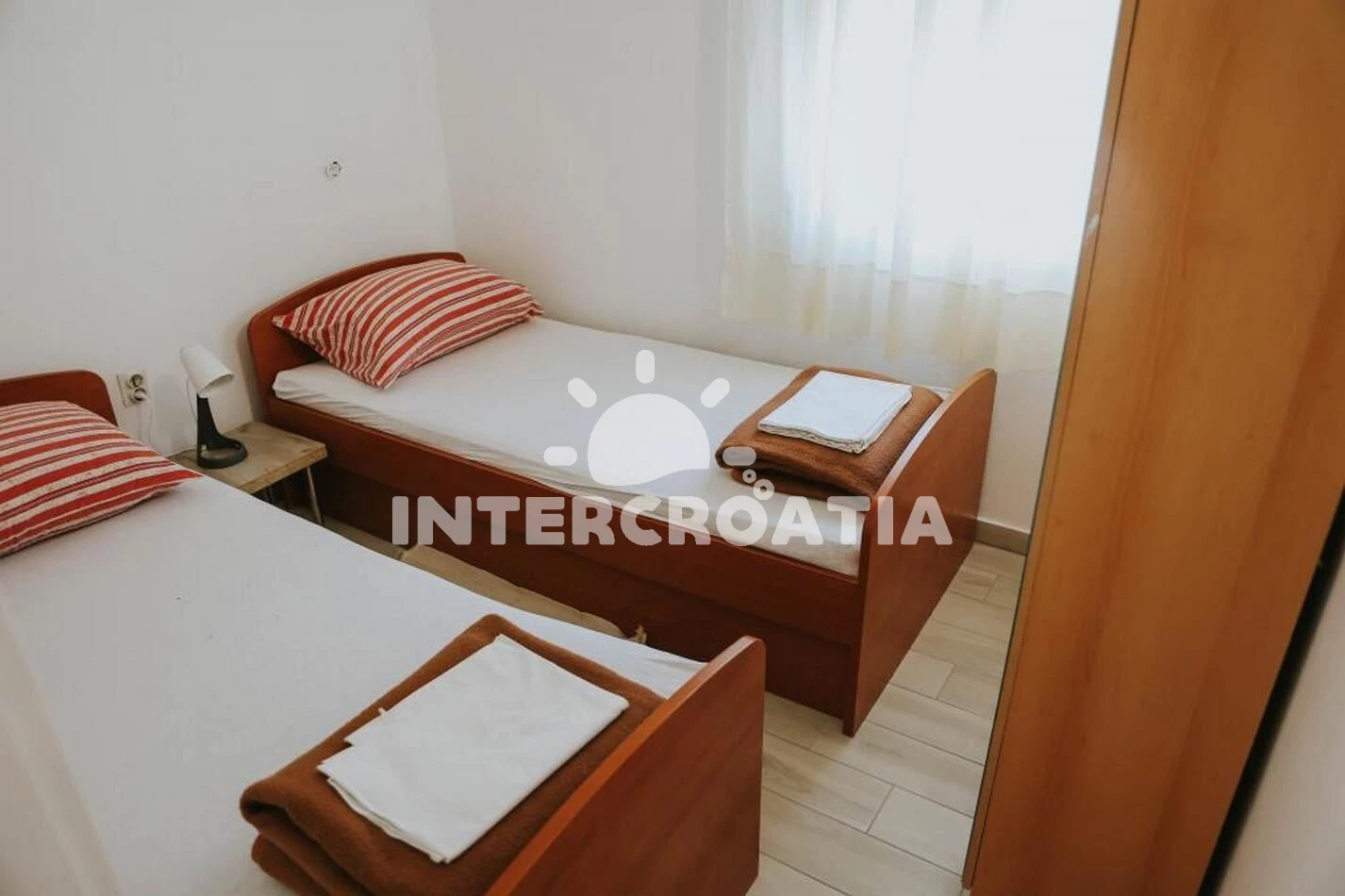 Vzdálenosti: Moře 60 m, pláž 60 m (oblázková a betonové desky), supermarket 50 m, veřejná doprava 100 m, restaurace 100 m, bar 100 m, diskotéka 400 m, marina 4 km, půjčovna kol 4 km, muzeum 4 km, pošta 4 km, centrum 4 km, potápění 4 km, čerpací stanice 4 km, směnárna 4 km, ambulance 4 km, lékárna 4 km, půjčovna motorových člunů 4 km, trajekt (Prizna) 10 km, banka 40 km, letiště (Zadar) 70 km,