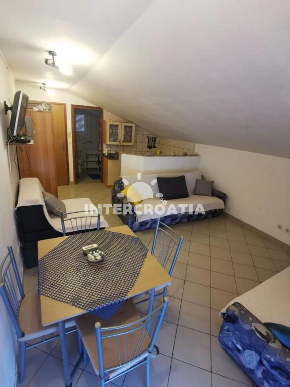 Vzdálenosti: Moře 60 m, pláž 60 m (oblázková a betonové desky), supermarket 50 m, veřejná doprava 100 m, restaurace 100 m, bar 100 m, diskotéka 400 m, marina 4 km, půjčovna kol 4 km, muzeum 4 km, pošta 4 km, centrum 4 km, potápění 4 km, čerpací stanice 4 km, směnárna 4 km, ambulance 4 km, lékárna 4 km, půjčovna motorových člunů 4 km, trajekt (Prizna) 10 km, banka 40 km, letiště (Zadar) 70 km,