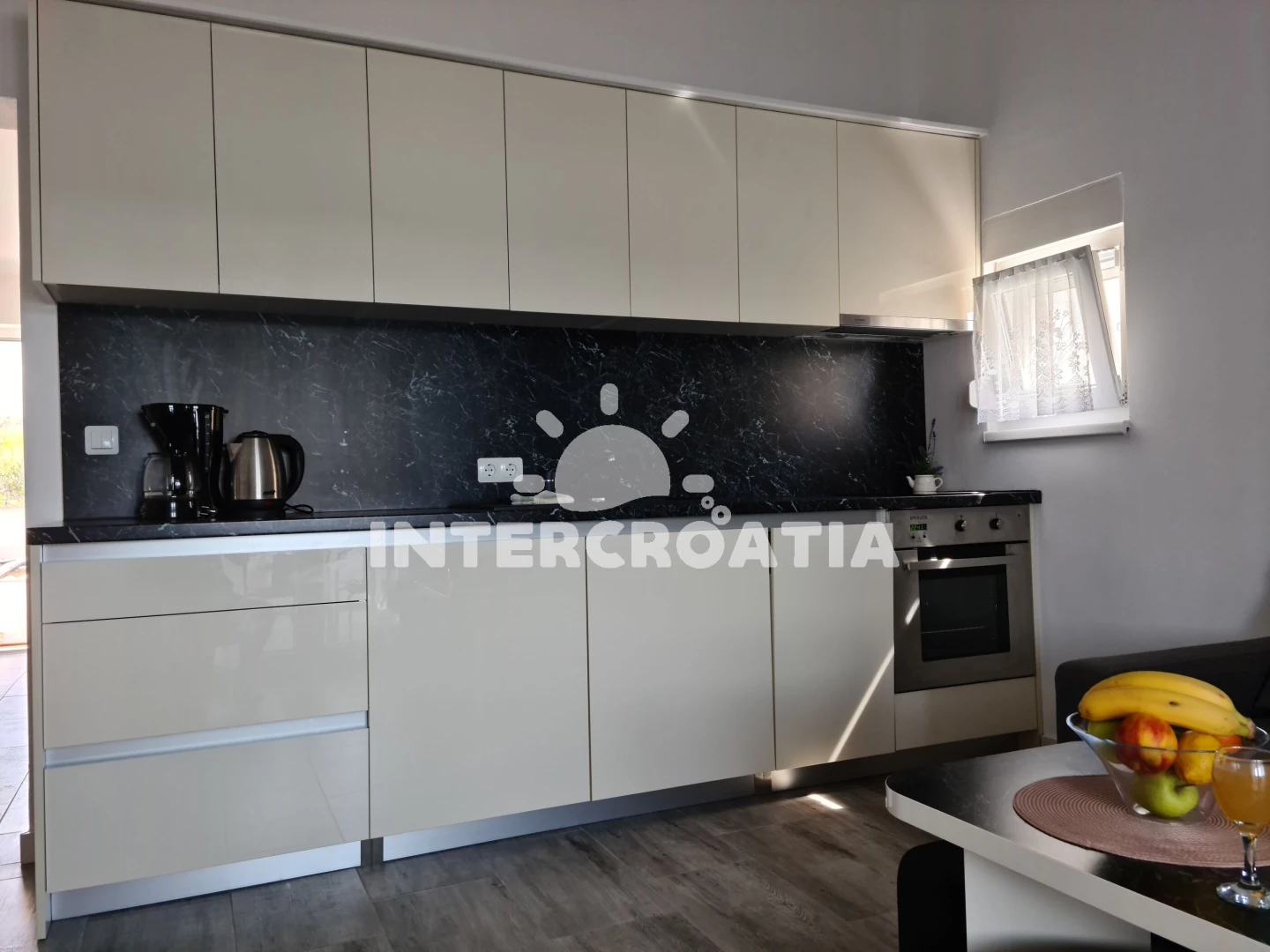Vzdálenosti: Moře 10 m, pláž 10 m (písčitá a oblázková), bar 20 m, restaurace 20 m, supermarket 30 m, centrum 50 m, diskotéka 100 m, veřejná doprava 1,5 km, lékárna 5 km, pošta 5 km, směnárna 5 km, čerpací stanice 8 km, banka 12 km, půjčovna kol 12 km, ambulance 12 km, půjčovna motorových člunů 27 km, letiště (Zadar) 32 km, park Plitvice 41 km, muzeum 46 km, potápění 46 km, trajekt (Zadar) 46 km,