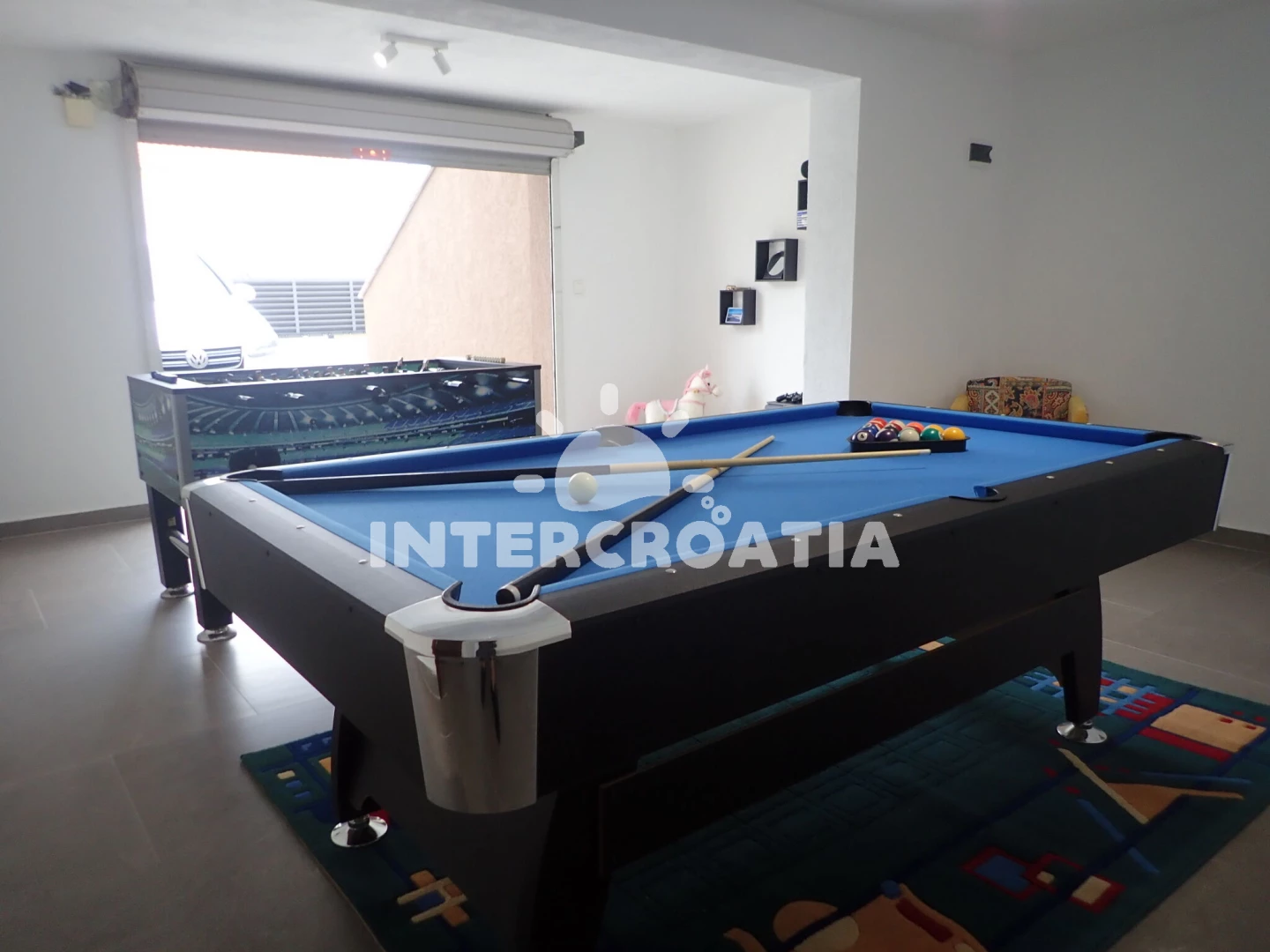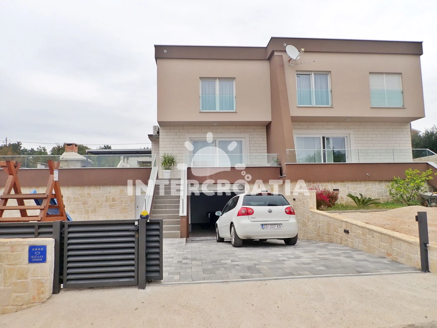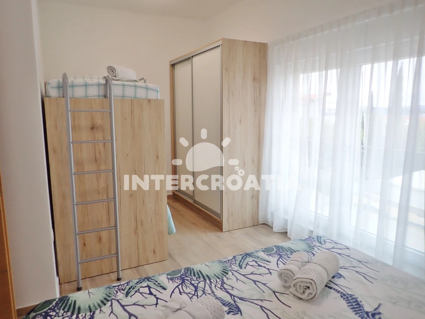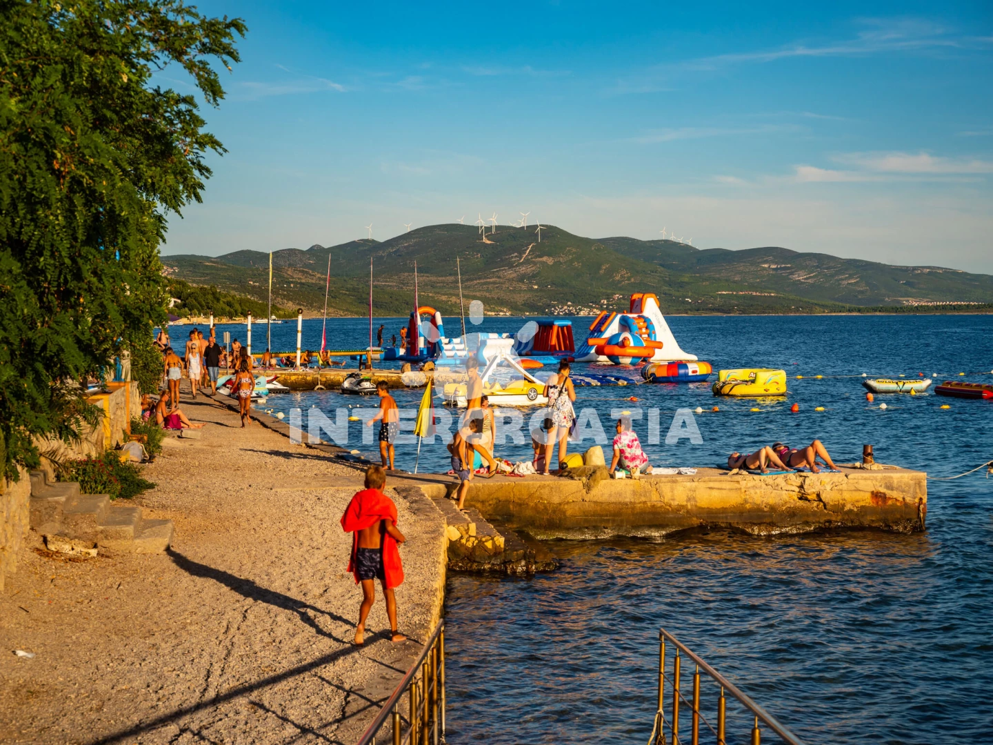 Vzdálenosti: Moře 200 m, pláž 250 m (oblázková a betonové desky), supermarket 50 m, veřejná doprava 200 m, směnárna 200 m, bar 300 m, ambulance 300 m, centrum 350 m, restaurace 350 m, lékárna 5 km, čerpací stanice 7 km, půjčovna motorových člunů 12 km, tenisové kurty 13 km, pošta 16 km, půjčovna kol 16 km, park Plitvice 16 km, letiště (Zadar) 22 km, marina 23 km, banka 23 km, muzeum 23 km, potápění 25 km, diskotéka 25 km, trajekt (Zadar) 26 km,