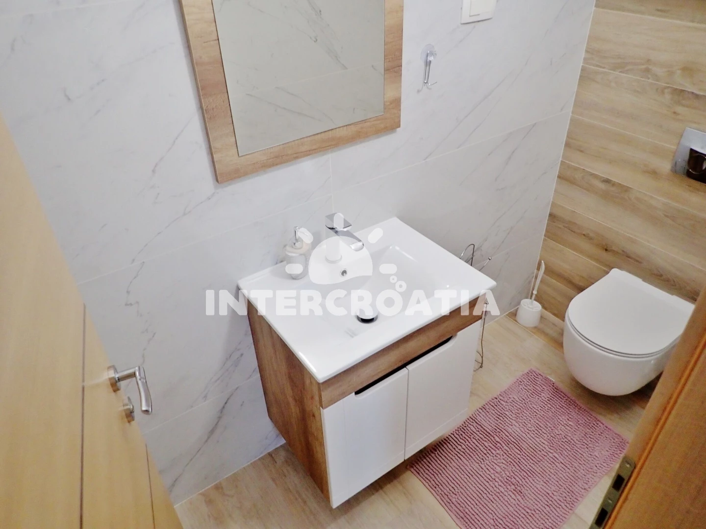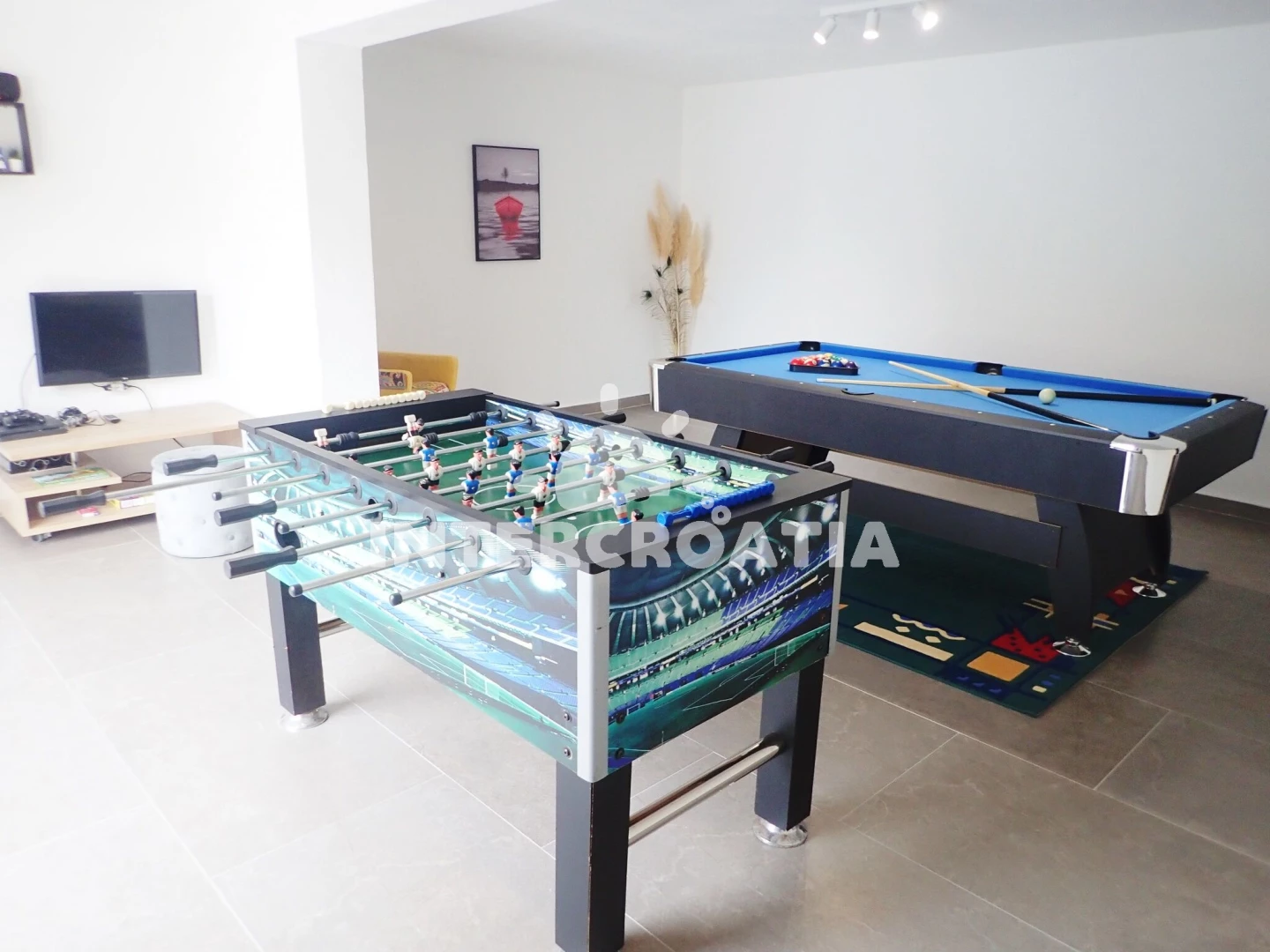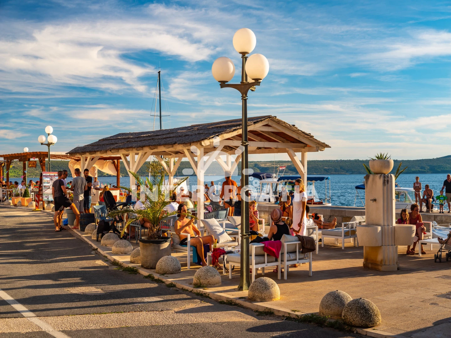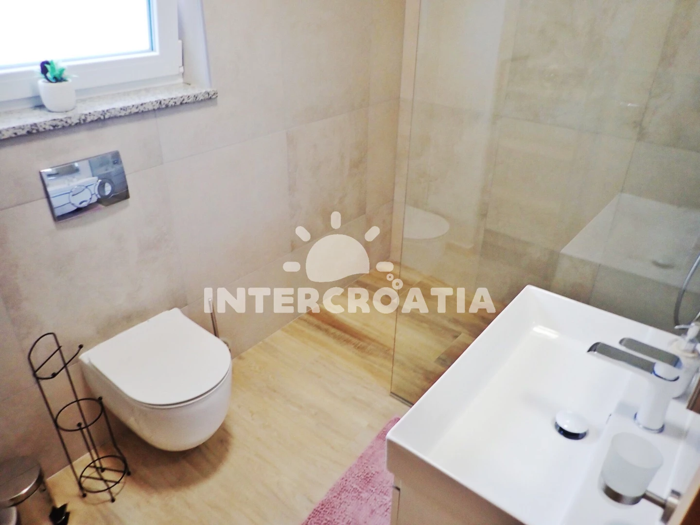 Vzdálenosti: Moře 200 m, pláž 250 m (oblázková a betonové desky), supermarket 50 m, veřejná doprava 200 m, směnárna 200 m, bar 300 m, ambulance 300 m, centrum 350 m, restaurace 350 m, lékárna 5 km, čerpací stanice 7 km, půjčovna motorových člunů 12 km, tenisové kurty 13 km, pošta 16 km, půjčovna kol 16 km, park Plitvice 16 km, letiště (Zadar) 22 km, marina 23 km, banka 23 km, muzeum 23 km, potápění 25 km, diskotéka 25 km, trajekt (Zadar) 26 km,