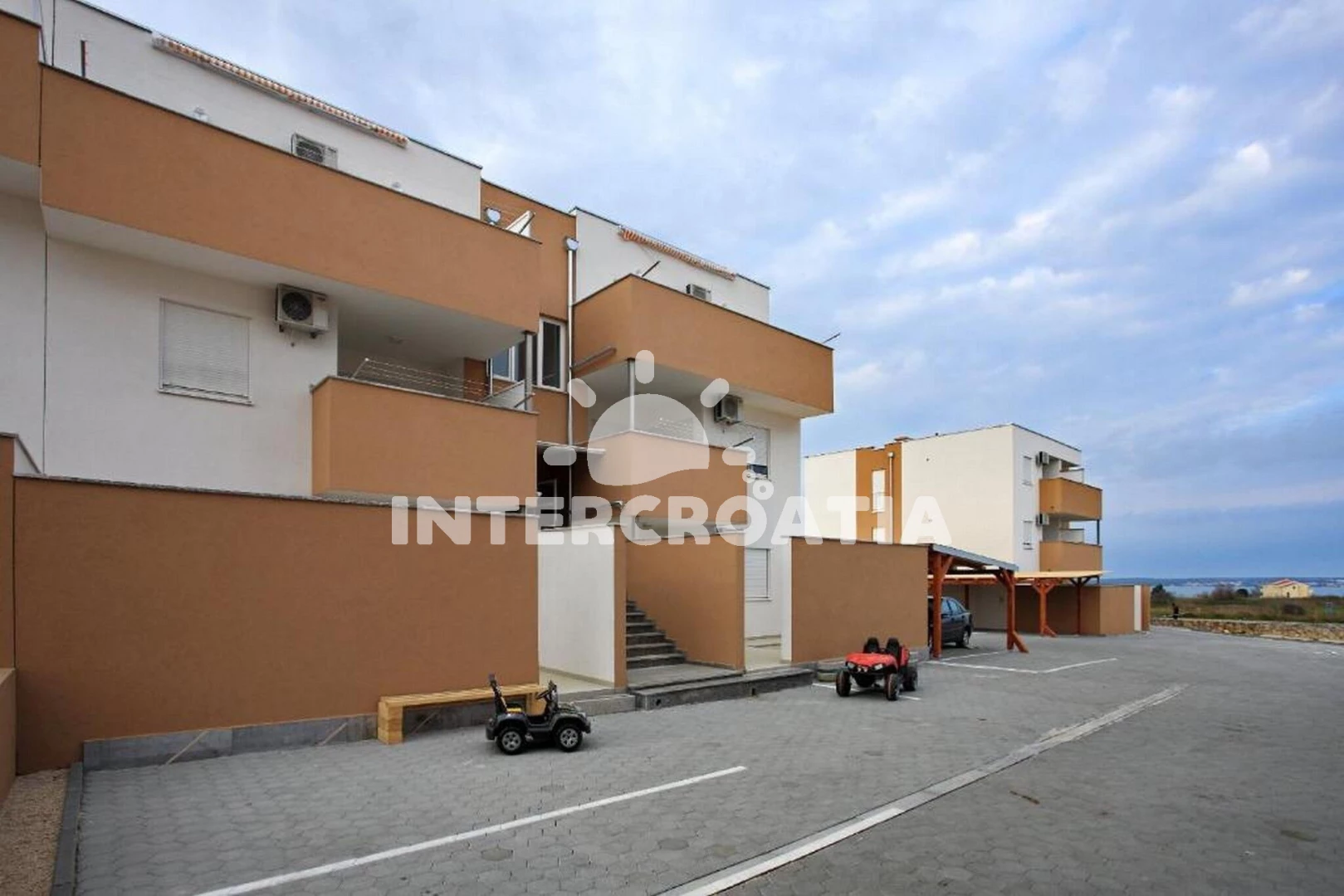 Vzdálenosti: Moře 1 km, pláž 1 km (písek), supermarket 350 m, veřejná doprava 350 m, centrum 1 km, diskotéka 1 km, restaurace 1 km, bar 1 km, pošta 1 km, směnárna 1 km, lékárna 1 km, ambulance 1 km, půjčovna motorových člunů 1 km, půjčovna kol 1 km, čerpací stanice 3 km, potápění 3 km, banka 30 km, marina 30 km, trajekt (Zadar) 35 km, letiště (Zadar) 35 km,