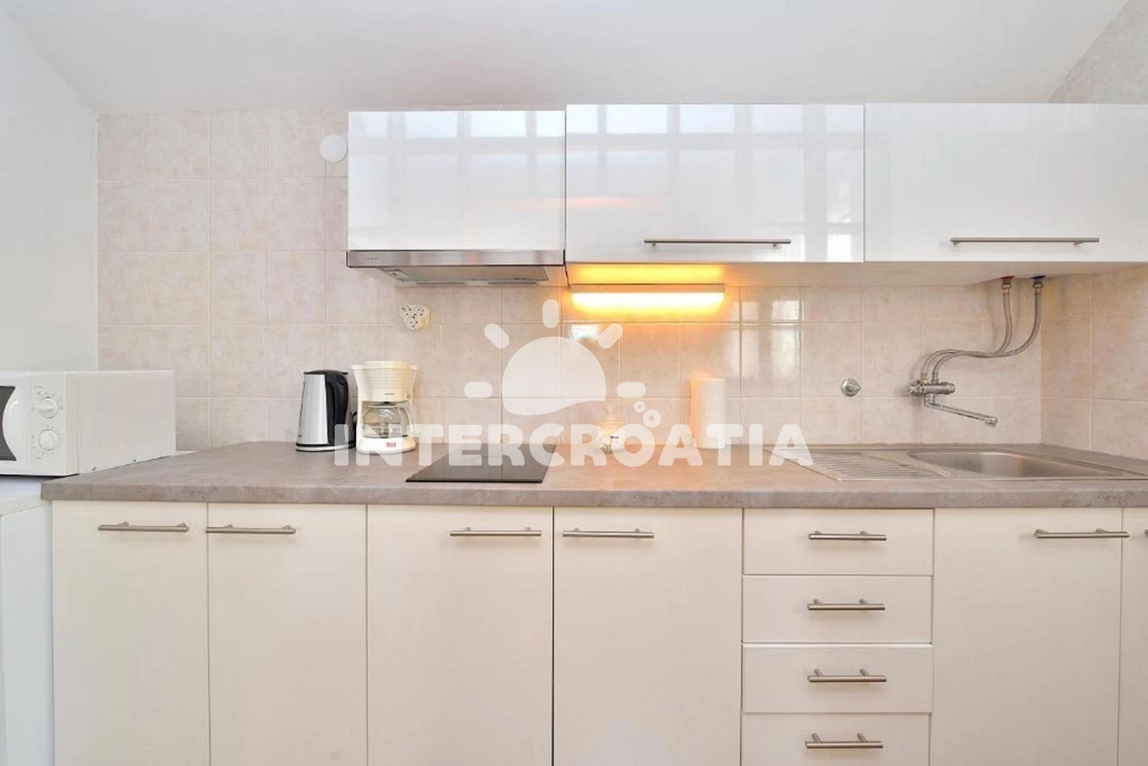 Vzdálenosti: Moře 800 m, pláž 1,2 km (písek), centrum 1,9 km, supermarket 2 km, bar 2 km, restaurace 2 km, lékárna 2,4 km, ambulance 2,4 km, letiště (Zadar) 30 km,
