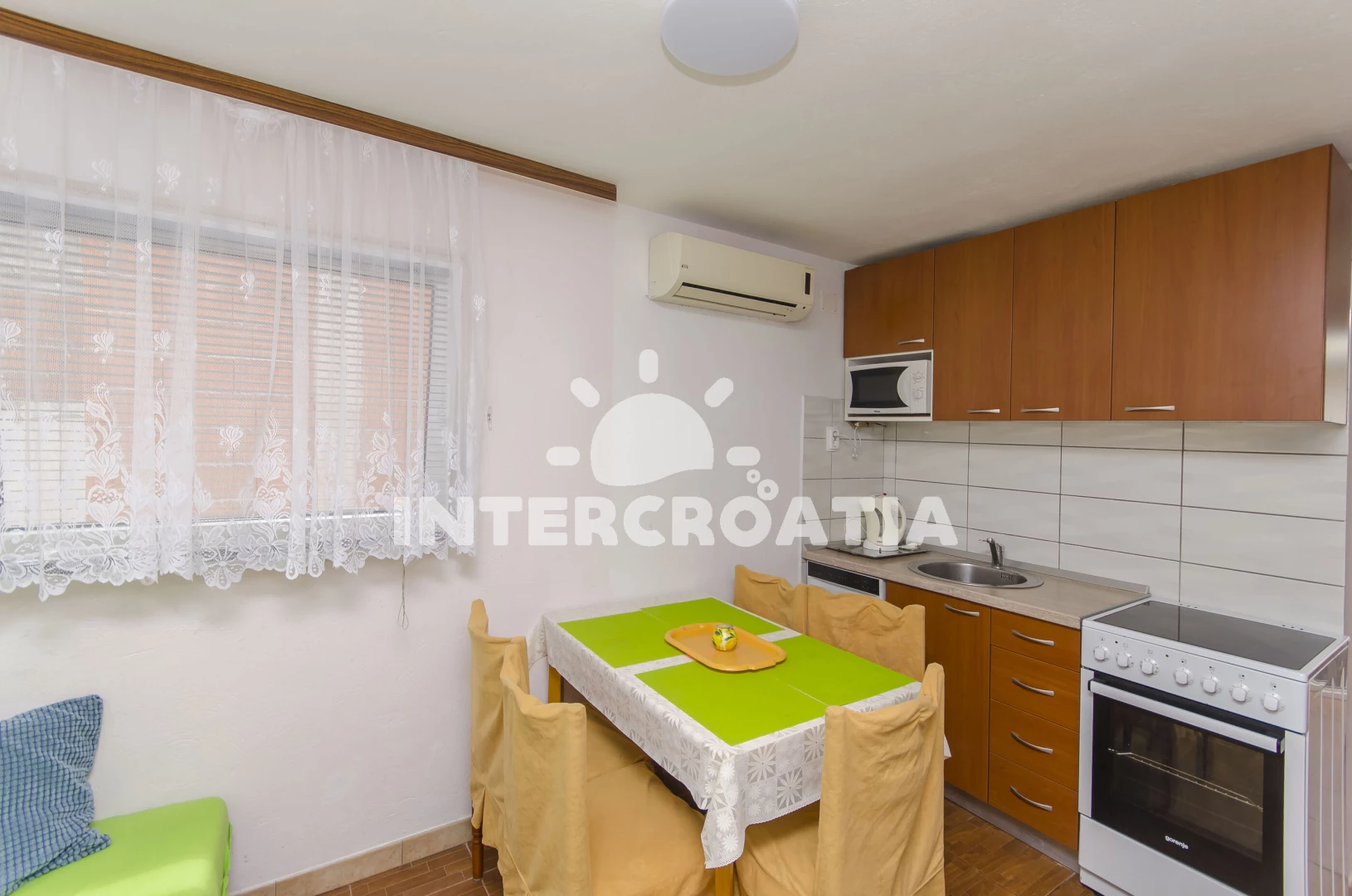 Vzdálenosti: Moře 30 m, pláž 30 m (oblázky), supermarket 200 m, bar 200 m, restaurace 800 m, centrum 1 km, muzeum 1 km, lékárna 1 km, ambulance 1 km, směnárna 1 km, banka 1 km, pošta 1 km, čerpací stanice 2 km, potápění 3 km, diskotéka 3 km, mini golf 3 km, tenisové kurty 3 km, trajekt 14 km, marina 14 km, letiště (Zadar) 30 km,