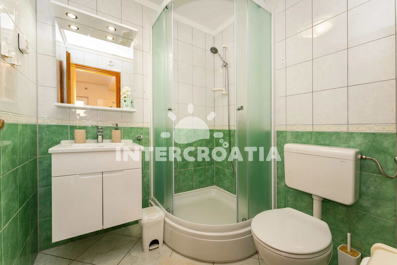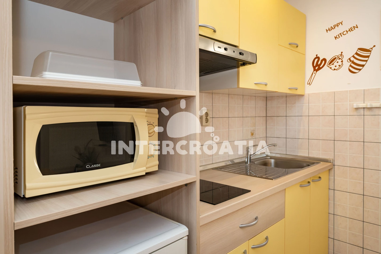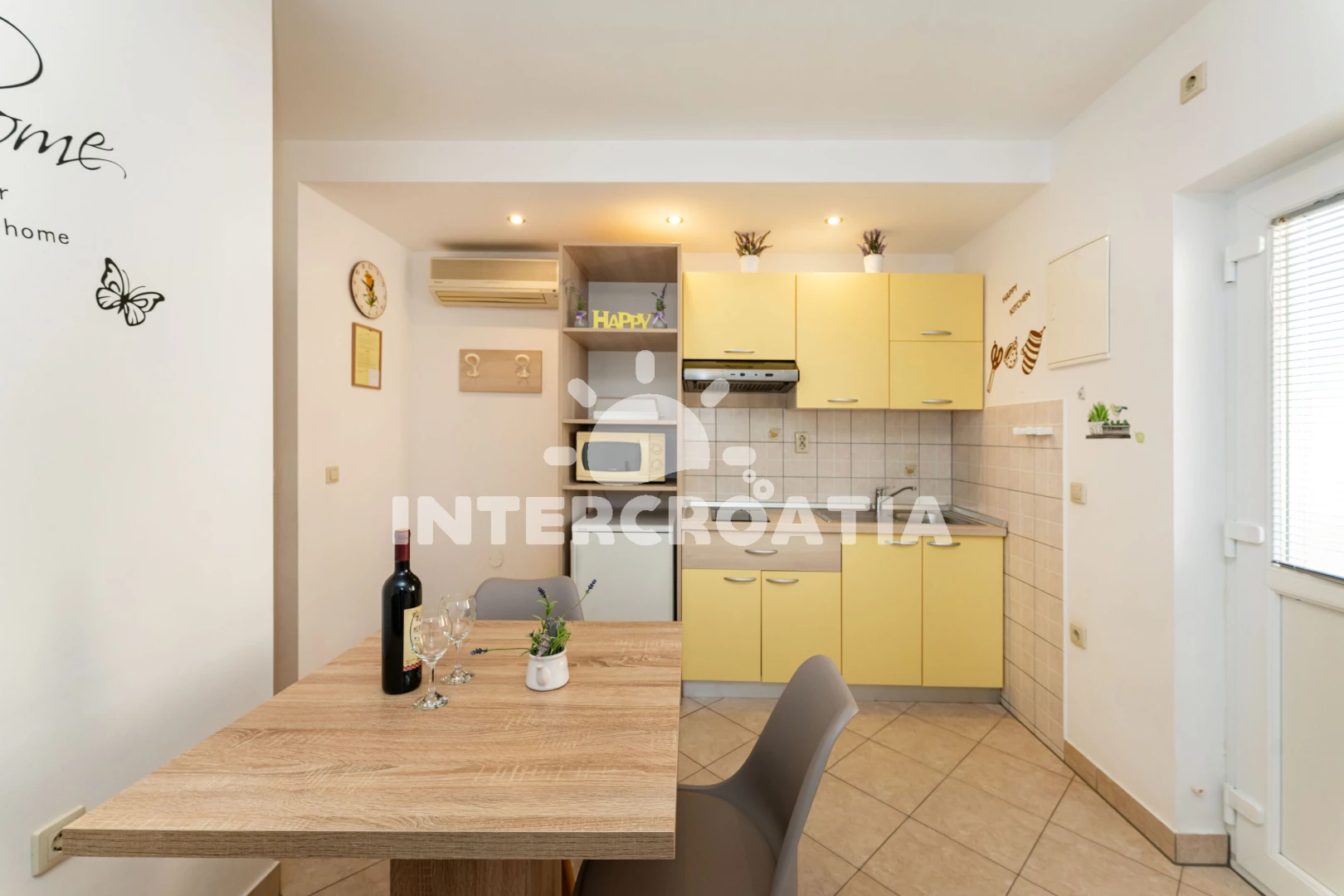 Vzdálenosti: Moře 200 m, pláž 500 m (písčitá a betonové desky), bar 5 m, centrum 30 m, supermarket 50 m, restaurace 50 m, půjčovna motorových člunů 200 m, veřejná doprava 400 m, ambulance 400 m, lékárna 800 m, čerpací stanice 1,5 km, trajekt (Zadar) 14 km, letiště (Zadar) 18 km,