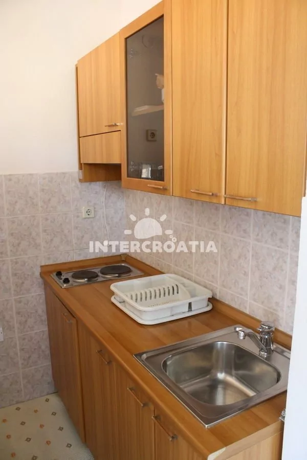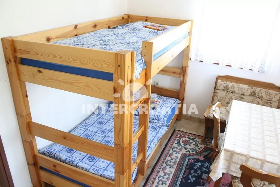 Apartmán s balkonem, výhledem do zahrady a klidné ulice se nachází v prvním patře vily a je vhodný pro 4 osoby. Obývací pokoj je spojený s kuchyní. Kuchyňská linka je vybavena dvouplotýnkovým sporákem, nádobím a chladničkou s mrazákem. Obývací pokoj s jídelním stolem pro 4 osoby, patrovou postelí (lůžka pro 2 osoby), televizí, klimatizací a vstupem na balkon. Ložnice s jedním dvoulůžkem. Koupelna se sprchovým koutem, umyvadlem a wc. Hostům je k dispozici parkování u objektu zdarma.
