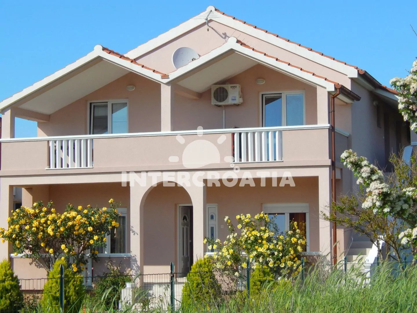 Samostatně stojící apartmánový dům 250 m od moře, 700 m pěší chůzí od menší písečné pláže a 1 km od velké písečné pláže. Dům nabízí ubytování ve 2 klimatizovaných apartmánech s lodžiemi a venkovním posezením. U domu zahrada s bazénem, solární sprchou, lehátky, zelení a grilem. Parkovací místa u objektu.
