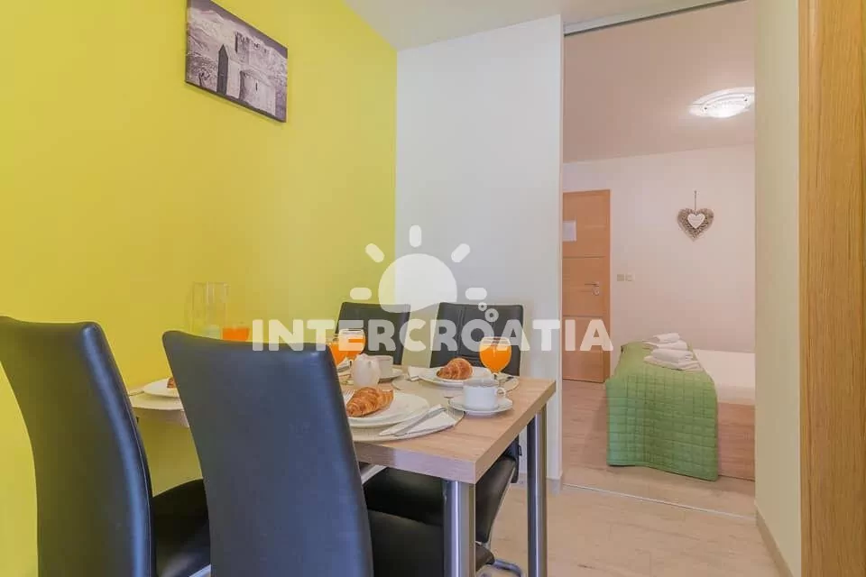 Nin je nejstarší královské město v Chorvatsku. Letovisko se pyšní nádhernými písečnými plážemi a jednou z nejmenších katedrál na světě, kterou je kostelík sv. Kříže. Turisté si tam odpočinou a dobijí energii. Apartmánový dům je situovaný 1,2 km od moře a písečné pláže Ninska laguna. Toto místo je ideální pro rodiny s dětmi. Moře je mělké a teplé. Všichni návštěvníci si chválí dostatek míst k ležení. Pláž vyniká nádherným výhledem na staré město Nin a přírodu. Občerstvení si můžete dát v plážové restauraci. Letovisko je proslulé léčivým bahnem. Za zmínku stojí také tradice výroby soli, která sahá až stovky let do historie. Pro štěstí si sáhněte na nohy sochy Grgur Ninski. Nejrůznější archeologické nálezy můžete vidět v muzeích. Zajímavá prohlídka vás čeká v Muzeu soli, kde se dozvíte vše o historii jejího zpracování. Před odchodem si můžete také zakoupit pěkné suvenýry ze soli. Pro turisty je určitě zajímavá lidové procesí na ostrov Zečevo, které oslavuje Pannu Marii. Gurmánům doporučujeme zúčastnit se festivalu Šokol. Pochoutka z vepřového masa „šokol“ má výraznou chuť, díky vínu, koření a ninské soli, další ingredience patří k rodinným receptům. Na konci červencového festivalu je vyhlášen vítěz, který maso nejlépe připravil. Koncem srpna se konají dny patronů Ninu, sv. Marcely a sv. Anselma. Naším tipem na výlet je Zadar. V létě se pořádají hudební festivaly, výstavy, divadelní vystoupení, lidové a gastronomické události. Vaši pozornost upoutají i historické památky. Prohlédněte si městské opevnění, paláce Nassis, kostely a katedrálu sv. Anastázie. Jeden z dnů se vydejte na celodenní výlet do Národního parku Krka nebo Národního parku Plitvická jezera. Pěší turisté a cyklisté si přijdou na své v Přírodním parku Vranské jezero.