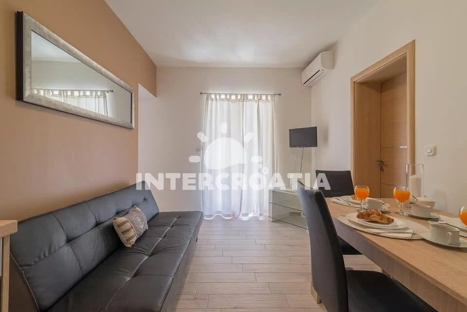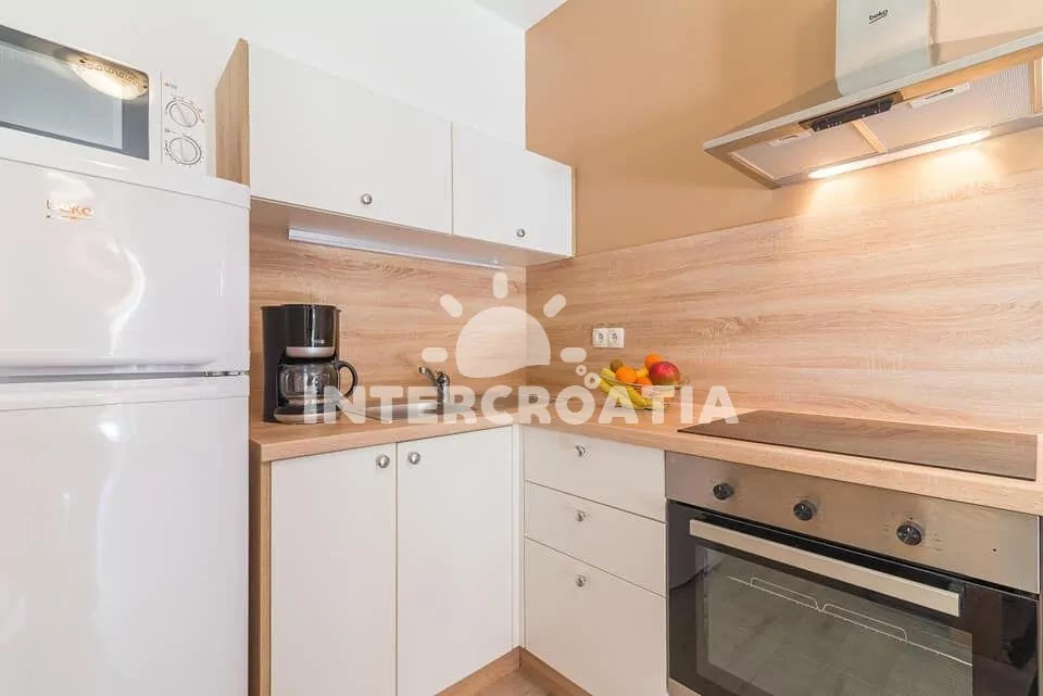 Velmi dobře umístěný a samostatně stojící apartmánový dům kousek od břehu moře. Dům nabízí ubytování ve 4 moderně zařízených a klimatizovaných apartmánech s lodžiemi. Na zahradě k dispozici společná terasa s pergolou, posezením a zděným grilem. Parkovací místa pro automobily u domu.