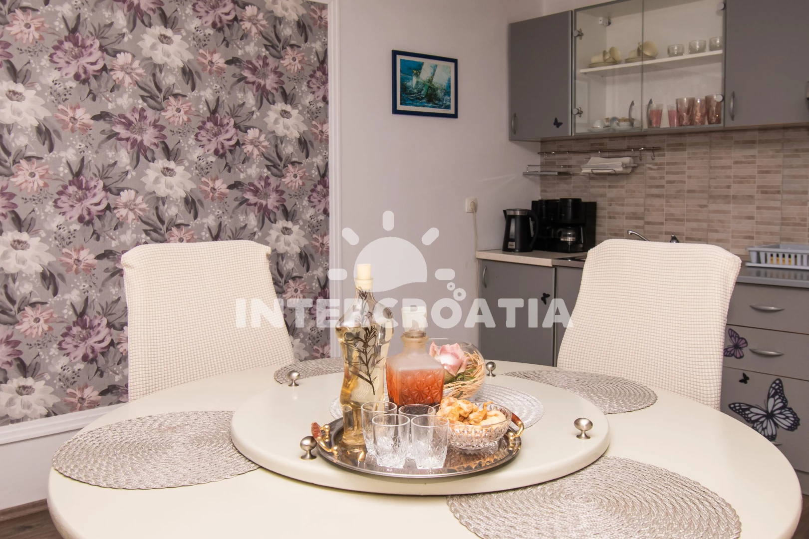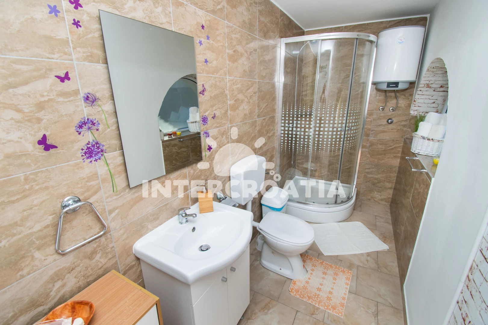 Vzdálenosti: Moře 500 m, pláž 600 m (písek), supermarket 50 m, lékárna 100 m, centrum 100 m, bar 250 m, směnárna 300 m, restaurace 350 m, kotviště pro čluny 499 m, čerpací stanice 800 m, veřejná doprava 800 m, banka 1,2 km, pošta 1,2 km, ambulance 1,5 km, muzeum 14 km, marina 15 km, park Plitvice 15 km, letiště (Zadar) 20 km, trajekt (Zadar) 20 km,