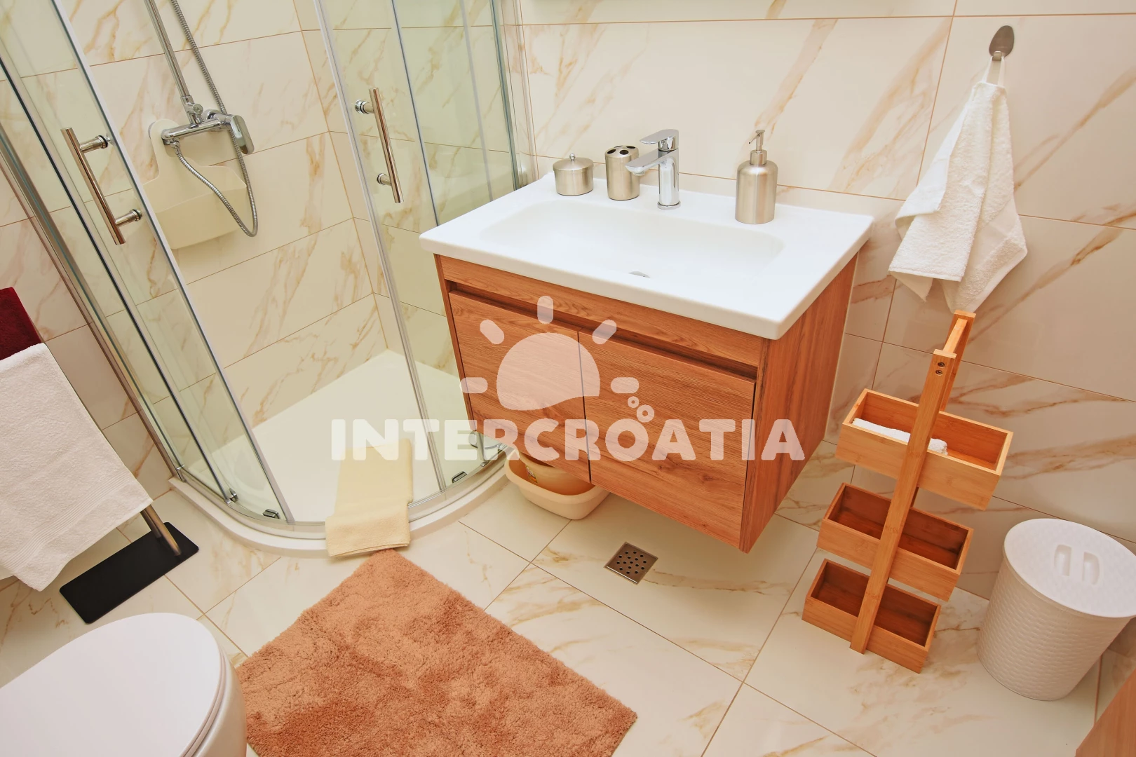 Vzdálenosti: Moře 800 m, pláž 800 m (písčitá a oblázková), supermarket 100 m, veřejná doprava 500 m, čerpací stanice 500 m, restaurace 500 m, lékárna 700 m, bar 700 m, centrum 800 m, ambulance 800 m, banka 1 km, trajekt (Biograd) 7 km, letiště (Zadar) 35 km, park Plitvice 35 km,