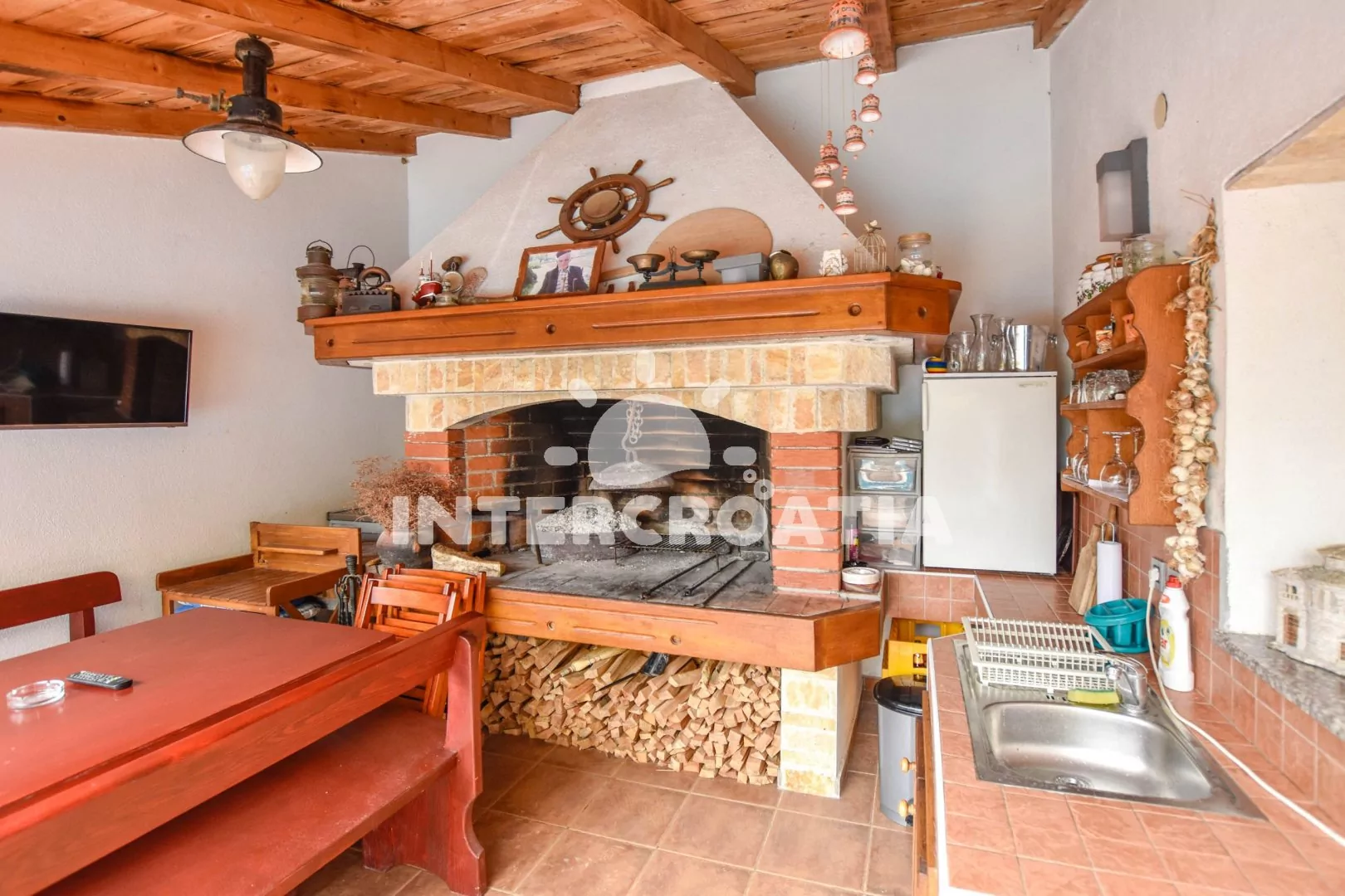 Vzdálenosti: Moře a oblázková pláž 300 m, centrum 20 m, restaurace 200 m, supermarket 240 m, pošta 350 m, lékárna, bar 400 m, půjčovna motorových člunů a cyklistických kol 500 m, veřejná doprava 800 m, čerpací stanice 950 m, trajekt, přístav 8 km, letiště 31,7 km.