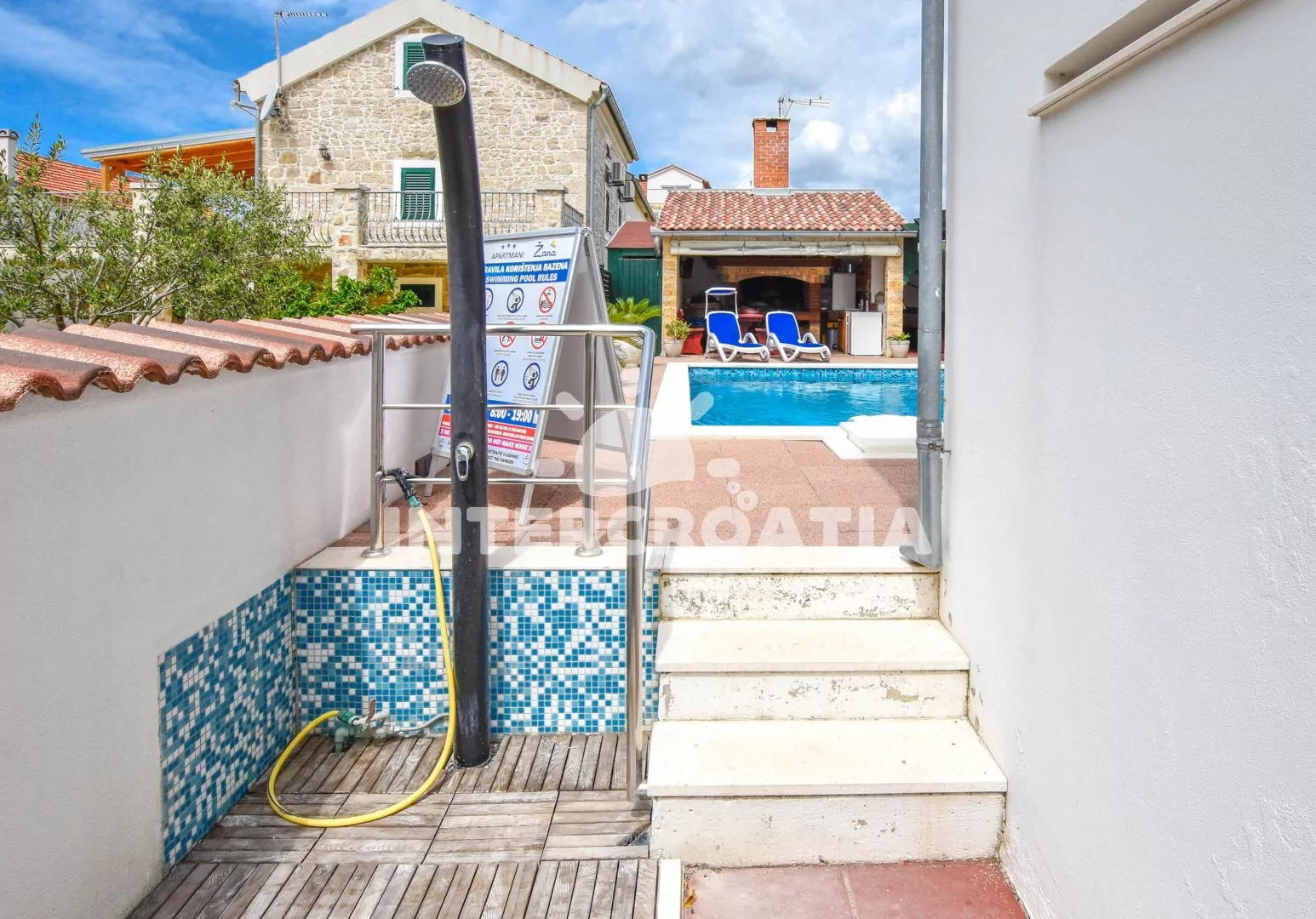 Domácí zvířata jsou povolena (8 €/den, uvést při rezervaci). V ceně pobytu zahrnuto: WiFi, klimatizace, povlečení, ručníky, závěrečný úklid a pobytová taxa. Bazén je plně k dispozici všem hostům vily. Pračka na požádání u pronajímatele. Registrační poplatek (180 Kč/osoba/pobyt, se připočte automaticky k ceně objednávky). Pronajímatel se dorozumí chorvatsky, anglicky, německy a italsky.