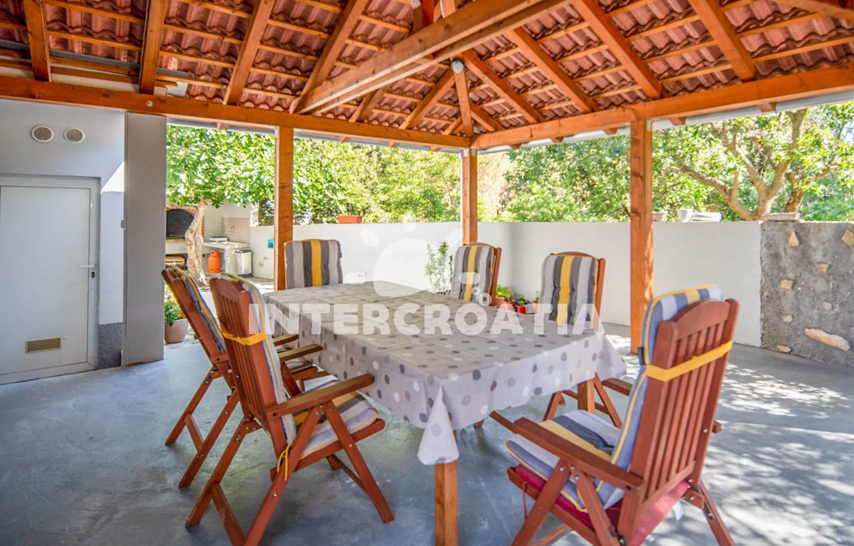 Příjemně zařízený a samostatně stojící apartmánový dům, nacházející se 600 m pěší chůzí od moře a pláže. Dům nabízí ubytování ve 2 klimatizovaných apartmánech s lodžiemi a venkovním posezením. K dispozici je společná terasa se zahradní kuchyní, grilem a pergolou s venkovním posezením. U domu parkovací místa pro automobily.