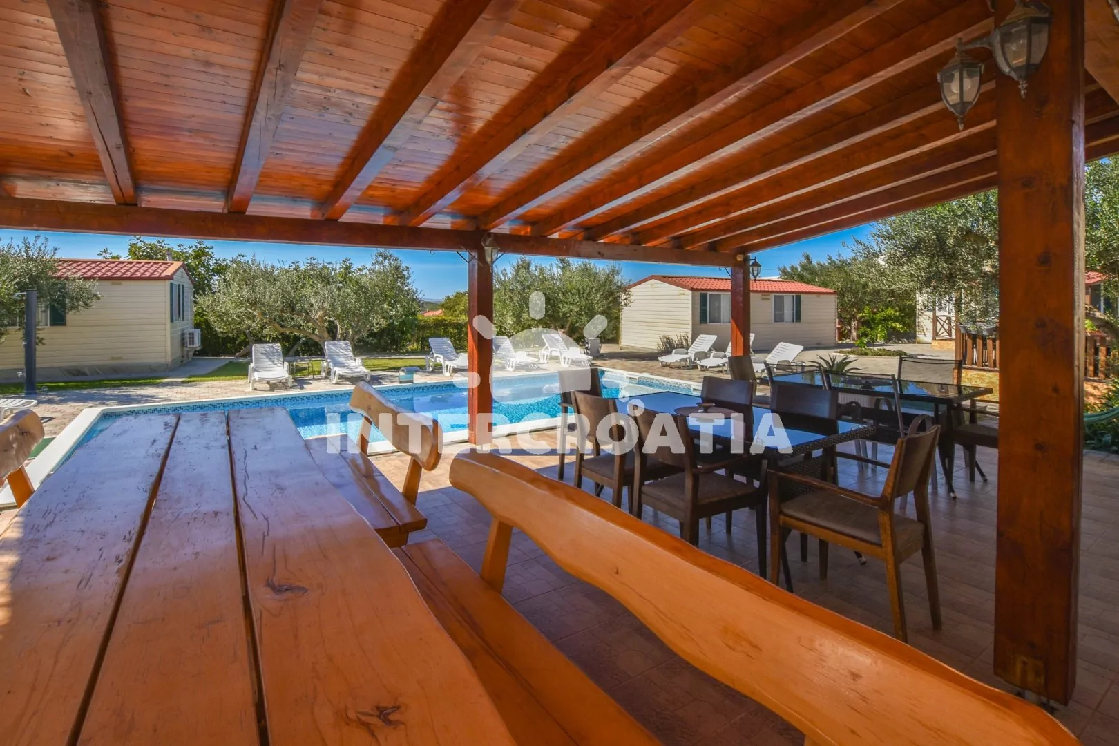 Prostorná apartmánová vila se zahradou, bazénem, lehátky u bazénu a venkovní sprchou. K dispozici jsou dvě společné terasy. Terasa v přízemí u bazénu s posezením a grilem. V patře terasa s posezením a výhledem na moře. Vila nabízí ubytování ve 4 klimatizovaných apartmánech. Přímo u vily vlastní pozemek s parkovištěm a přístřešky pro automobily. Dále možnost v objektu ubytování i ve 4 mobilheimech DA 4606.