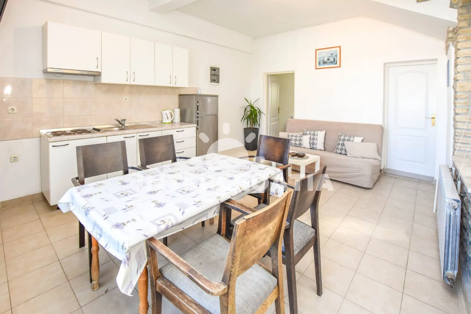 Vzdálenosti: Moře a oblázková pláž 430 m, restaurace 100 m, centrum, supermarket 300 m, půjčovna cyklistických kol, bar, pošta, potápění 400 m, ambulance, veřejná doprava 450 m, lékárna, směnárna, čerpací stanice, půjčovna motorových člunů 500 m, tenis 1 km, přístav, trajekt 8,3 km, letiště 32 km.