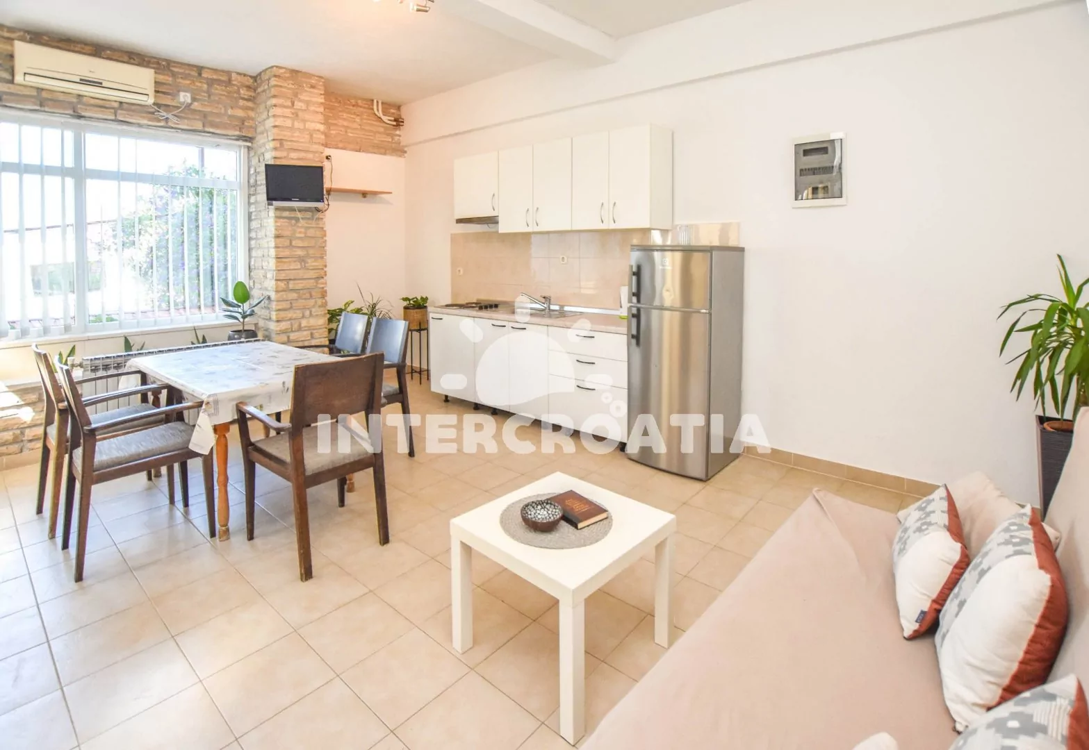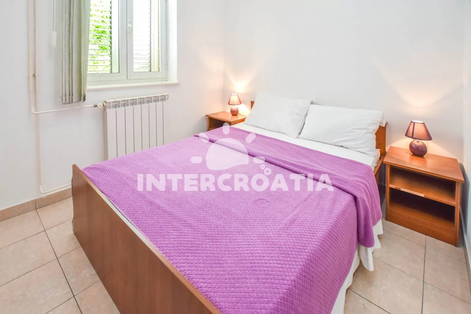 Apartmán (55 m2) s výhledem do dvora a zahrady se nachází v přízemí vily. Apartmán má 2 ložnice a je vhodný pro 4 až 6 osob. Obývací pokoj je spojený s kuchyní. Kuchyňská linka je vybavena varnou deskou, digestoří, rychlovarnou konvicí, nádobím a lednicí s mrazákem. Obývací pokoj s jídelním stolem, pohovkou (rozložitelná na extra lůžko pro 2 osoby), televizí a klimatizací. První i druhá ložnice je vybavena vždy s jedním dvoulůžkem. Koupelna se sprchovým koutem, umyvadlem a wc. Hostům je k dispozici parkování u objektu zdarma.