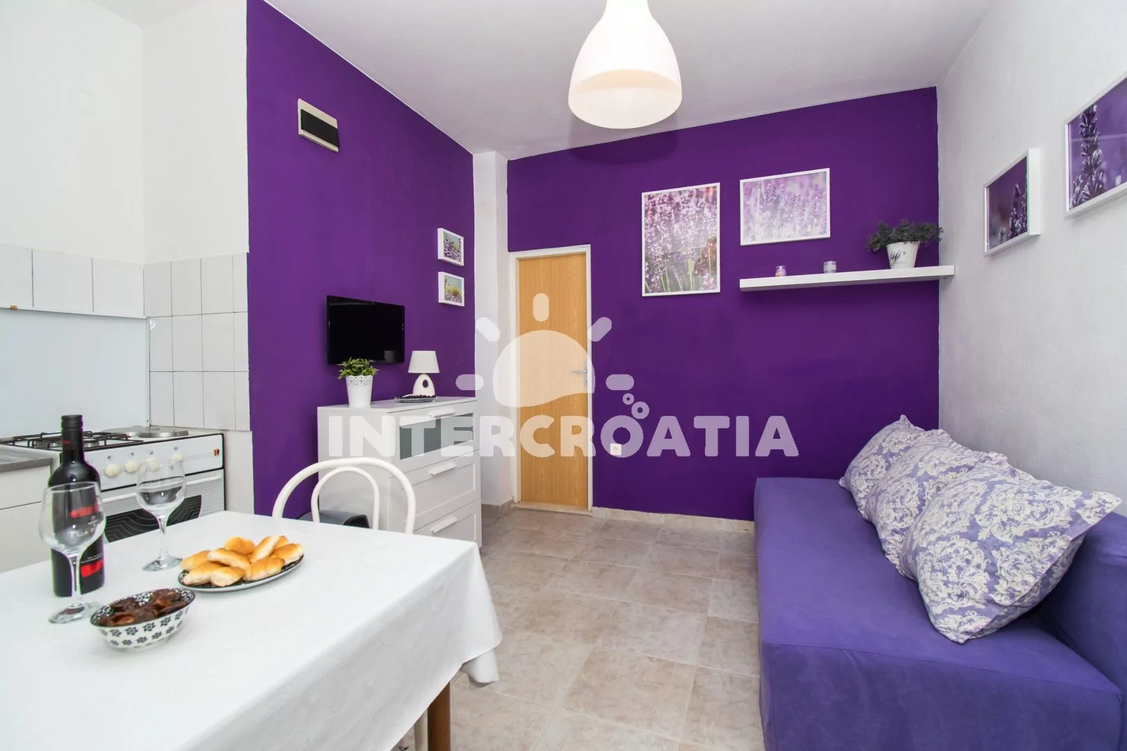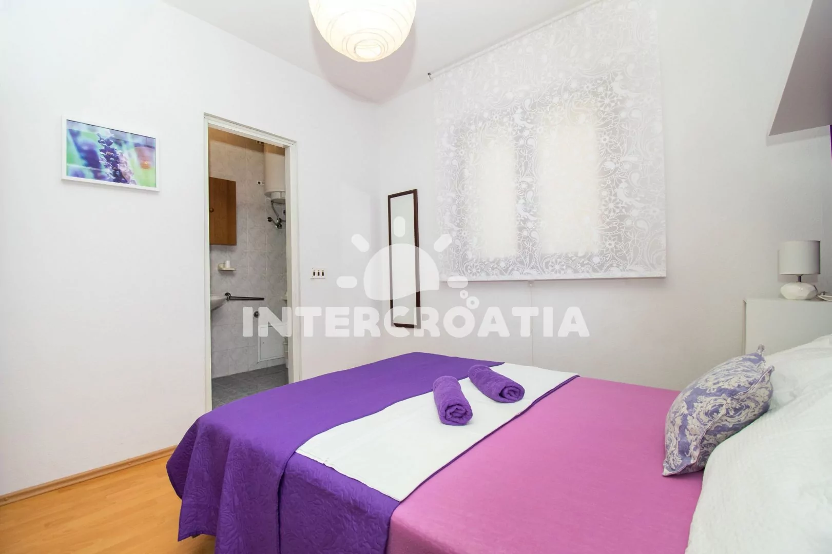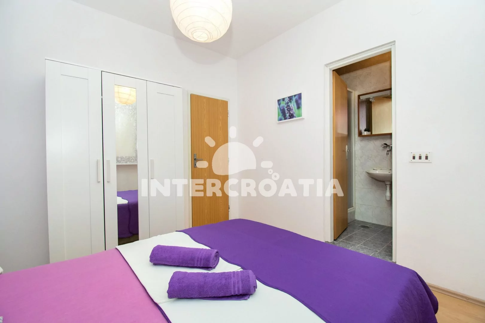 Klidnější obec Pakoštane stojí na úzké pevnině mezi Vranským jezerem a mořem, 8 km směrem na jihovýchod od tradičního města Biograd na Moru. Apartmán je vzdálen 600 m pěší chůzí od oblázkové pláže.