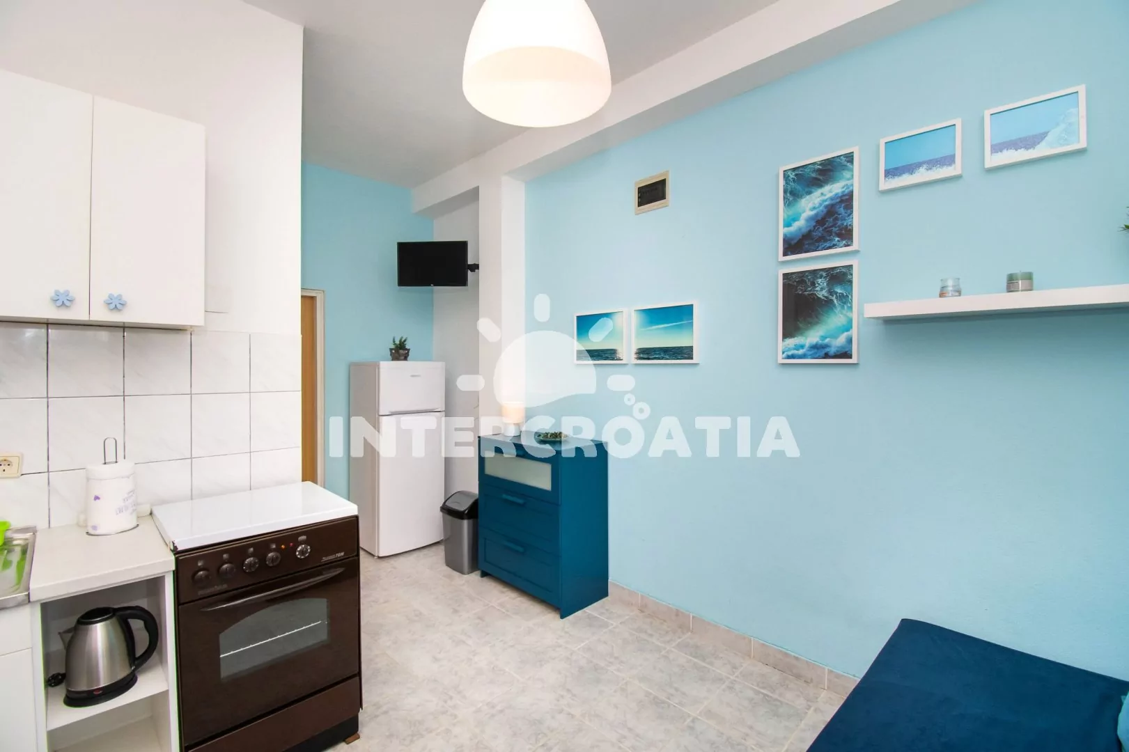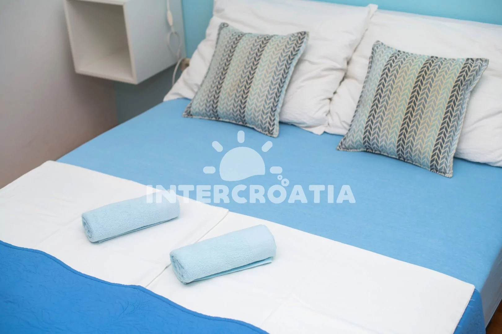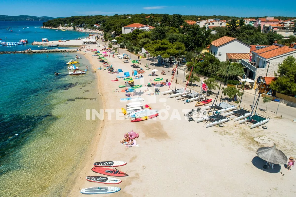 Vzdálenosti: Moře 400 m, pláž 600 m (oblázková a betonová mola), centrum města 500 m, restaurace 450 m, obchod 300 m, lékárna a banka 500 m, bar 450 m, přístav 500 m, tenisový kurt 900 m, čerpací stanice 700 m, trajekt 50 km (Zadar), letiště 30 km (Zadar).