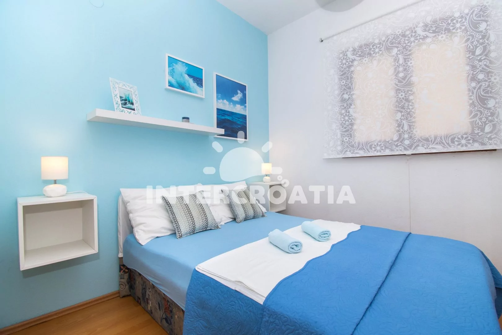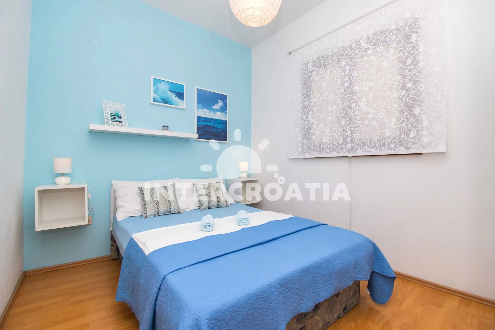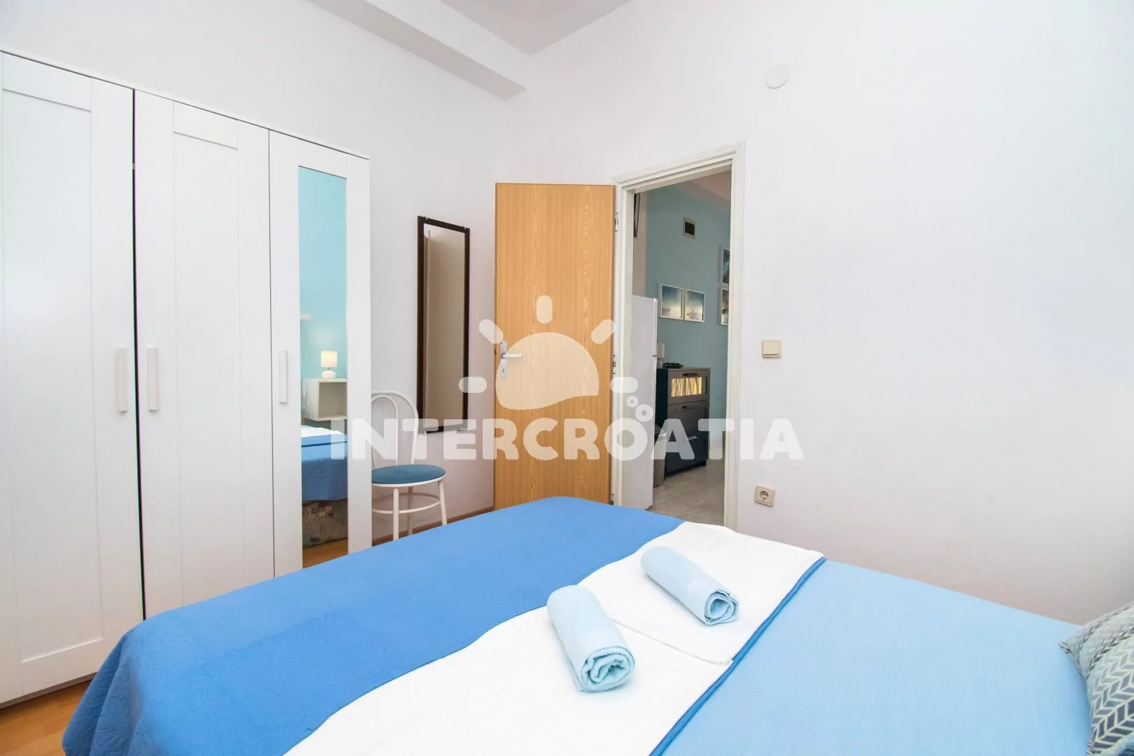 Klidnější obec Pakoštane stojí na úzké pevnině mezi Vranským jezerem a mořem, 8 km směrem na jihovýchod od tradičního města Biograd na Moru. Apartmán je vzdálen 600 m pěší chůzí od oblázkové pláže.