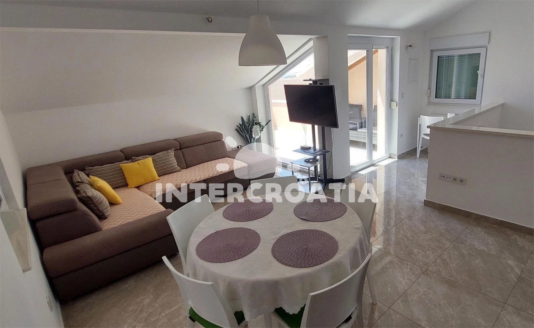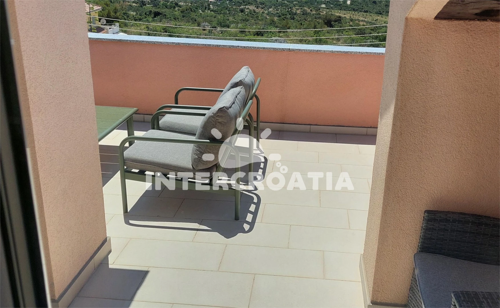 Apartmán (83 m2) s terasou, a výhledem na moře. Nachází se ve 2. patře objektu. Apartmán má 2 ložnice a je vhodný pro až 4 osoby. Kuchyňská linka je vybavena varnou deskou, kávovarem, troubou, myčkou…