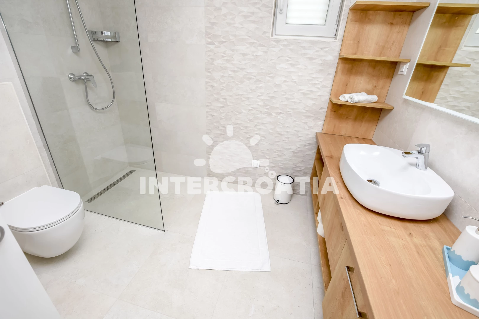 V Severní Dalmácii, 8 km na severozápad od malebné destinace Rogoznica a 30 km jižním směrem od turistického městečka Šibenik. Objekt leží 120 m pěšky od oblázkové pláže.