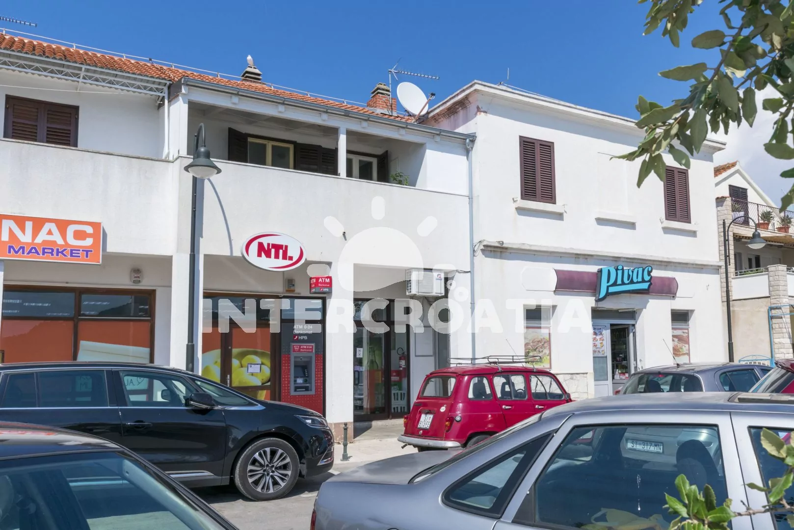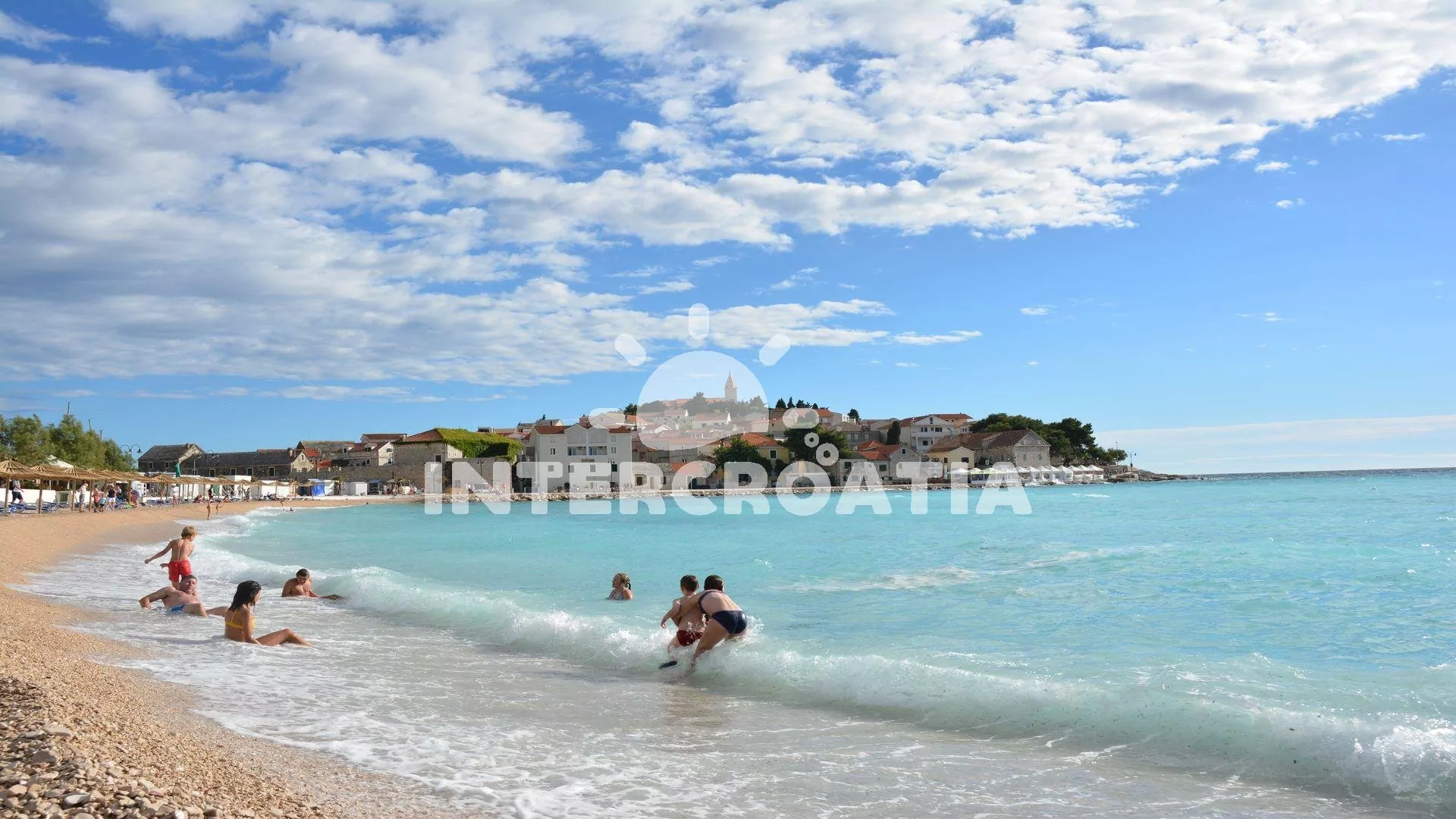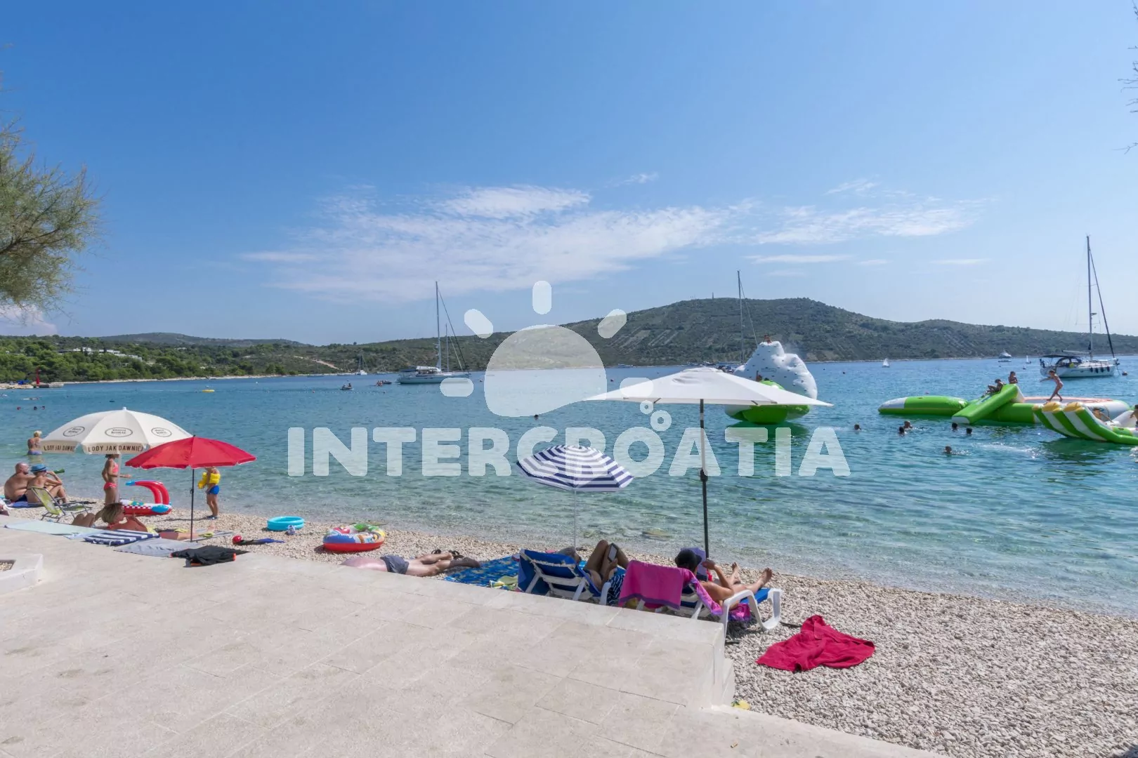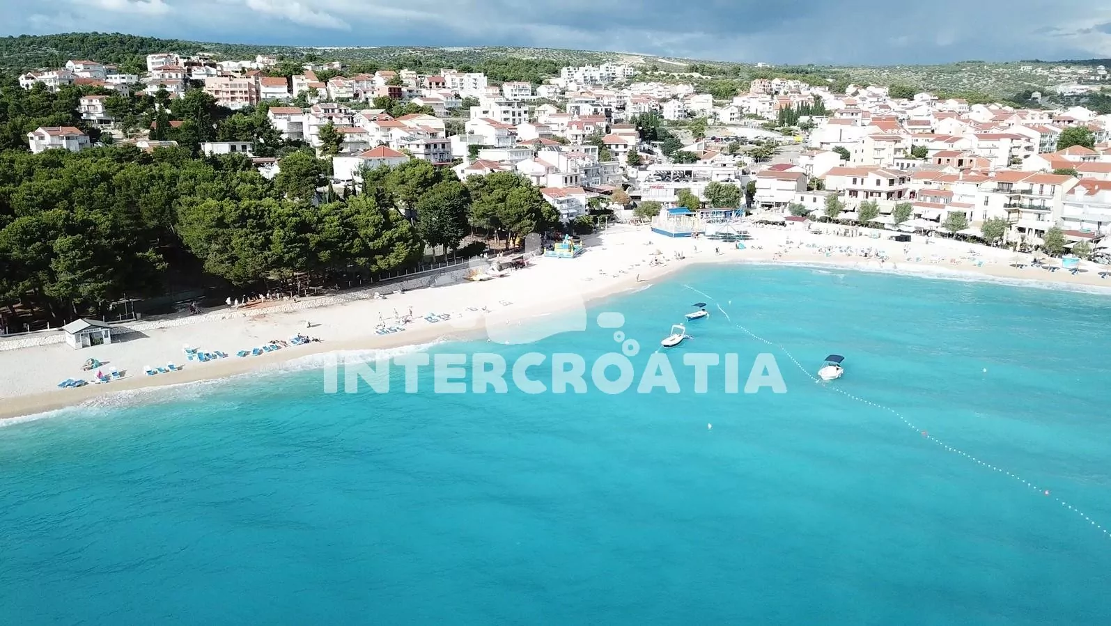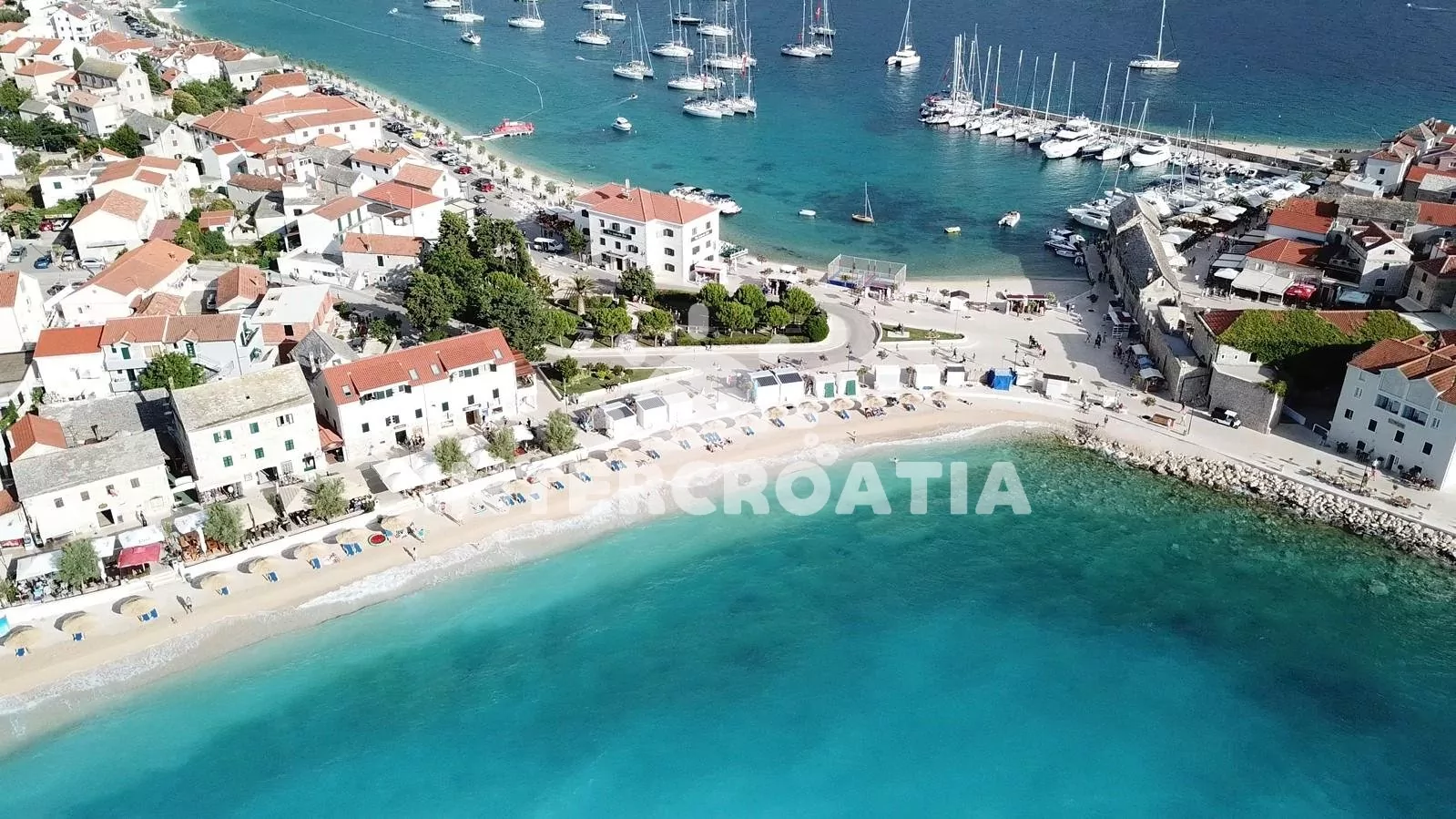 Vzdálenosti:Moře 25 m, pláž (oblázková a větší kamení) 40 m, velká oblázková pláž 260 m, centrum 260 m, market 30 m, pošta 280 m, lékárna 150 m, nemocnice 1,3 km, restaurace 200 m, směnárna 250 m, banka 285 m, přístav 2,2 km, potápěčský klub 800 m, půjčovna kol 340 m, tenisové kurty 390 m, minigolf 460 m, diskotéka 1,6 km, bar 100 m, čerpací stanice 300 m, veřejná doprava 240 m, trajekt (Split) 60 km, letiště (Split) 30 km.