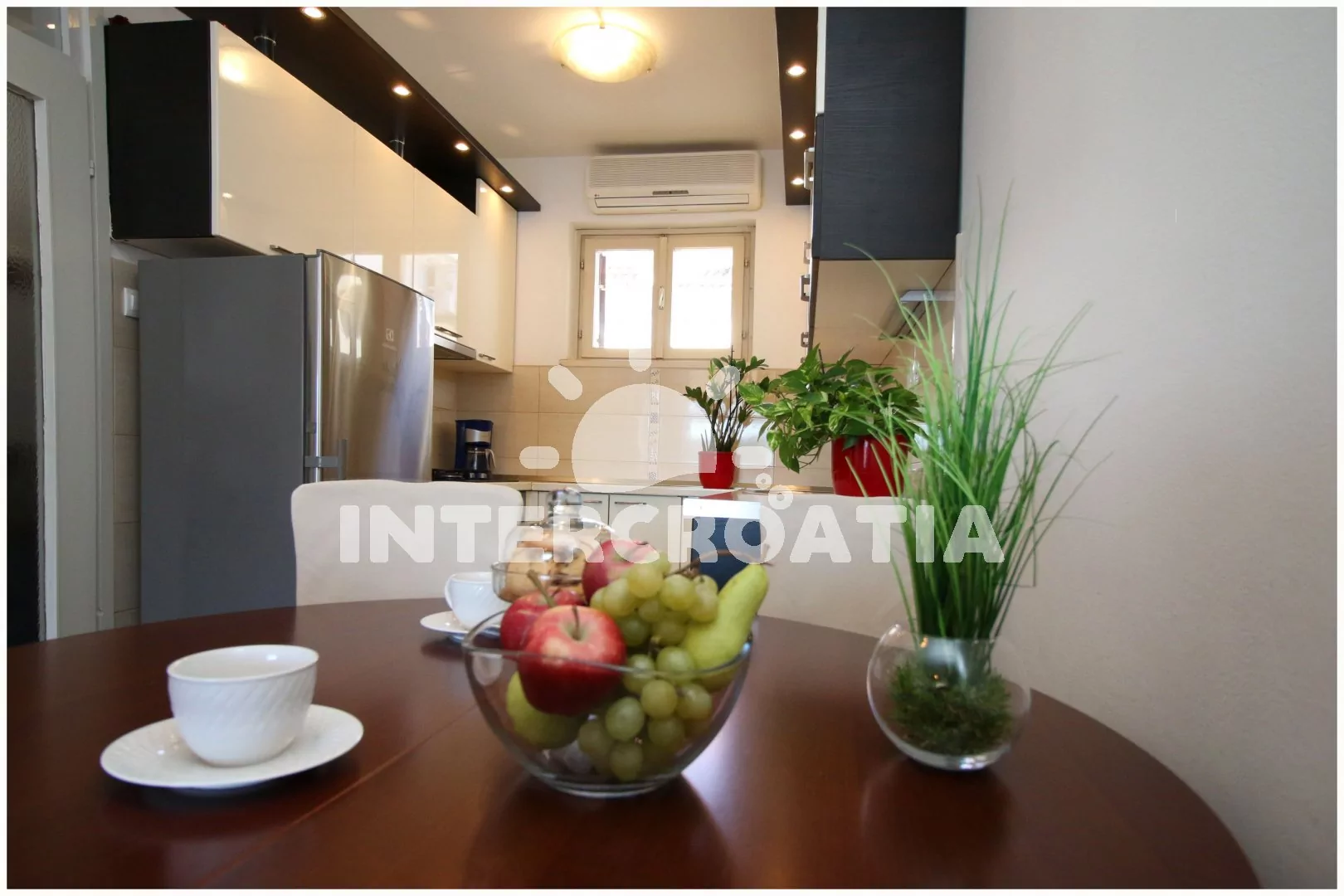 Příjemně zařízený apartmán, v prvním patře domu, s výhledem na moře. Kuchyň je spojena s obývacím pokojem. Kuchyňský kout je vybaven elektrickým/plynovým sporákem, troubou, digestoří, nádobím,…