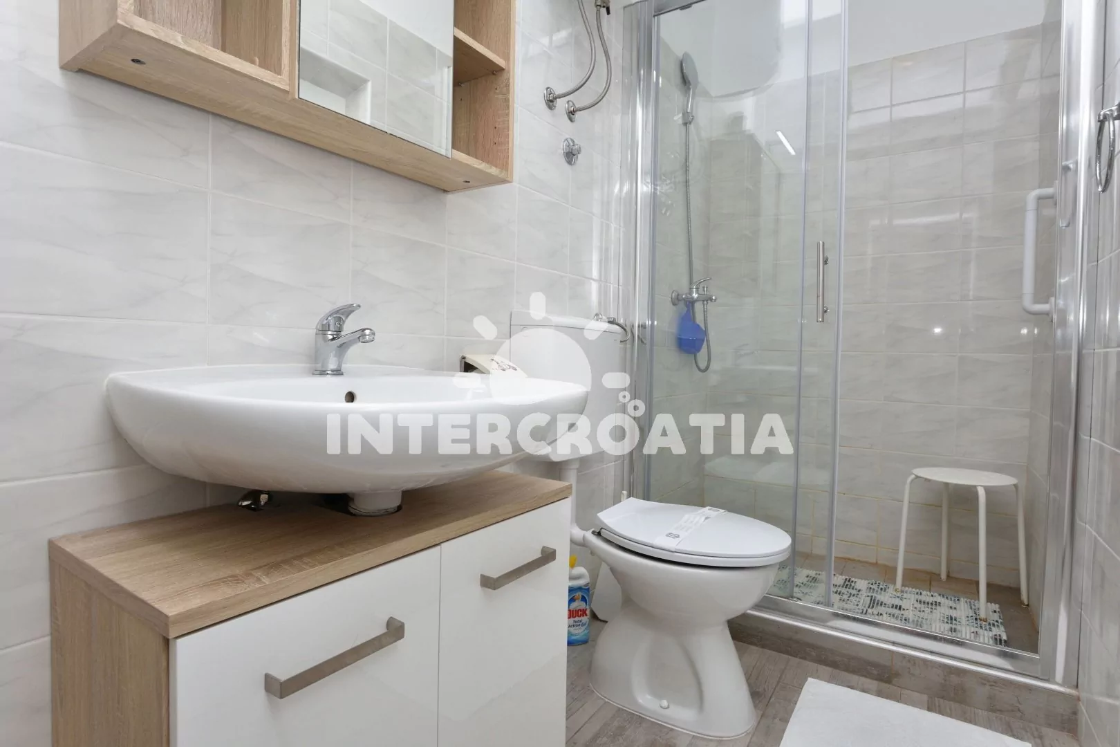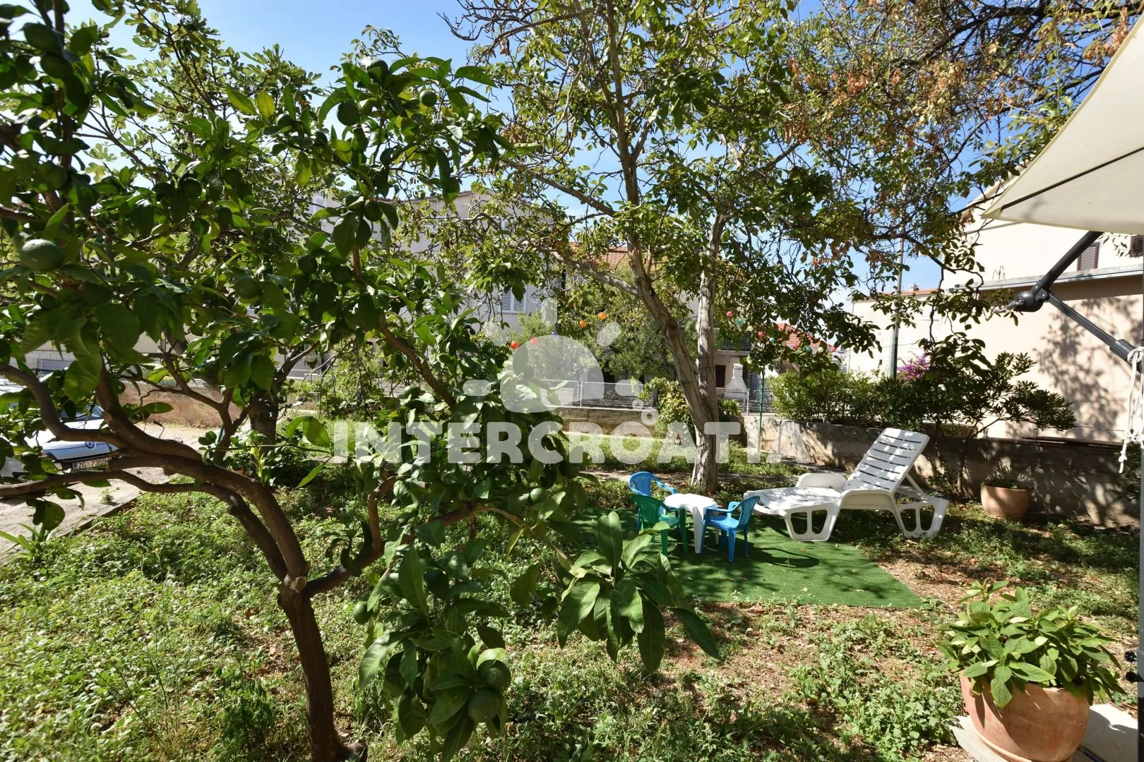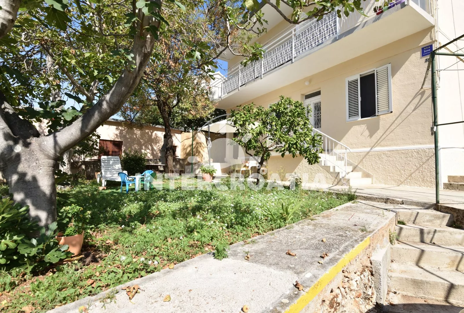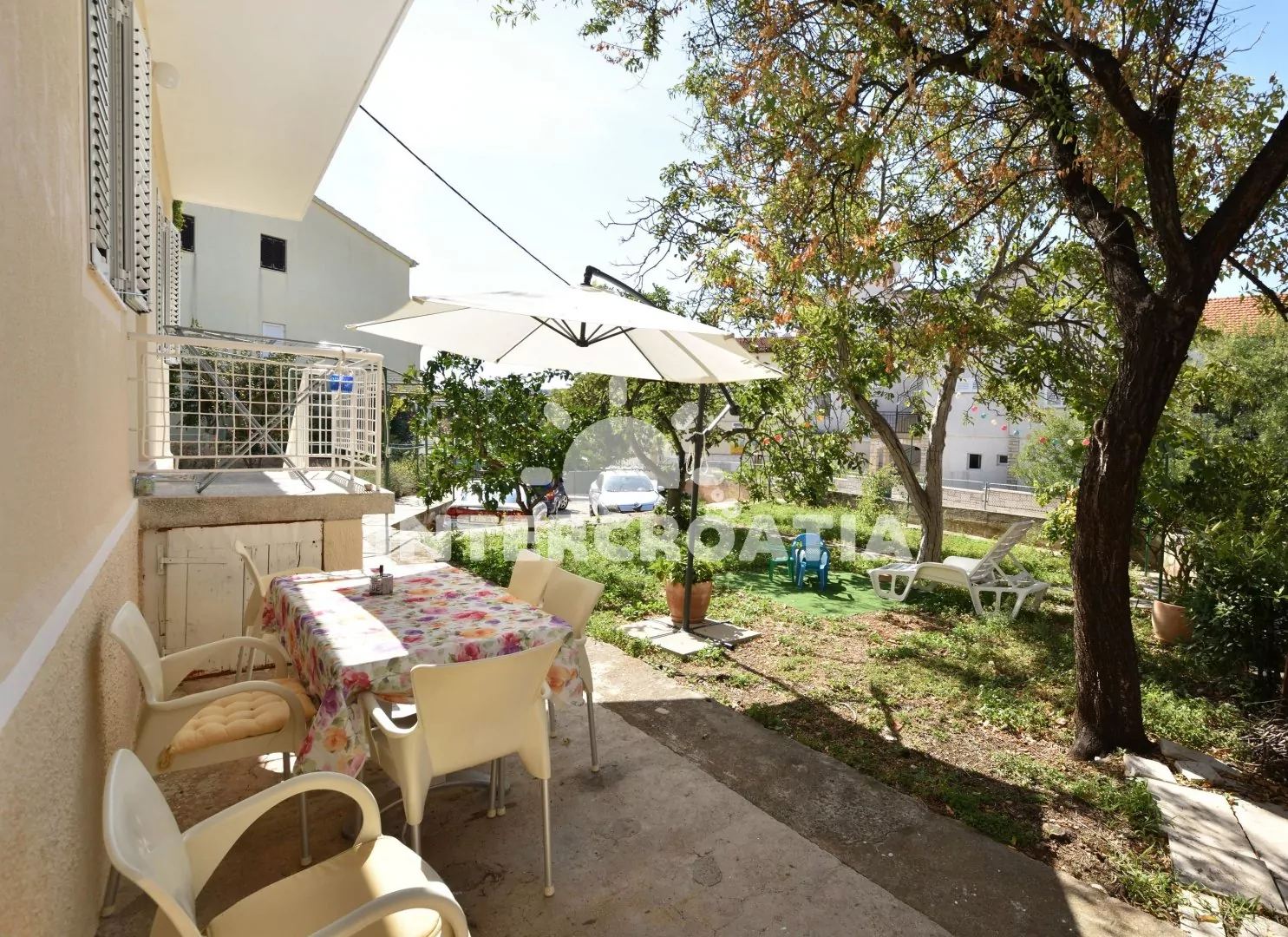 Vzdálenosti: Moře 85 m, pláž (skalnatá a oblázková) 120 m, centrum 450 m, market 120 m, pošta 410 m, lékárna 360 m, nemocnice 1 km, restaurace 380 m, směnárna 430 m, banka 460 m, přístav 1 950 m, potápěčský klub 930 m, půjčovna kol 530 m, půjčovna motorových člunů 380 m, tenisové kurty 575 m, mini golf 635 m, diskotéka 1 350 m, bar 115 m, čerpací stanice 300 m, veřejná doprava 385 m, trajekt (Split) 60 km, letiště (Split) 30 km.