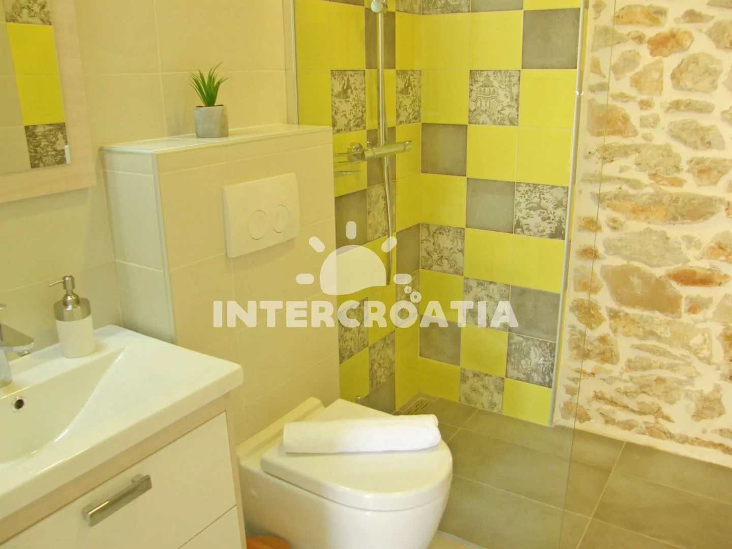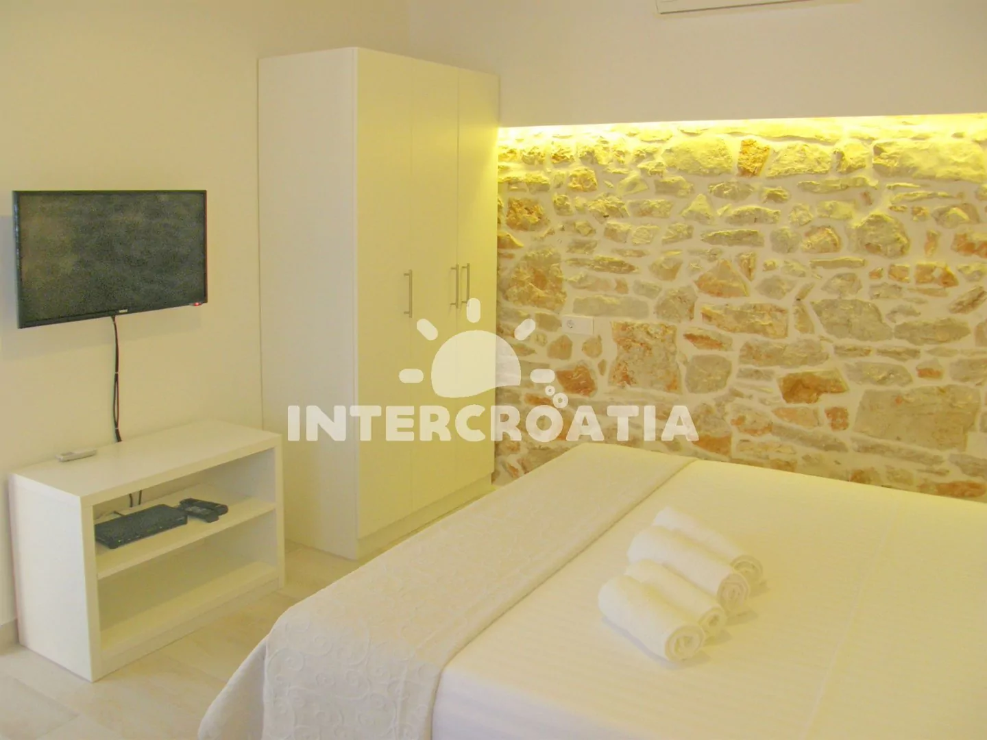 V Severní Dalmácii, 8 km severozápadně od původní rybářské osady Rogoznica a 13 km jihozápadně od malebného turistického městečka Grebaštica. Apartmán se nachází přímo u moře pár kroků pěšky.
