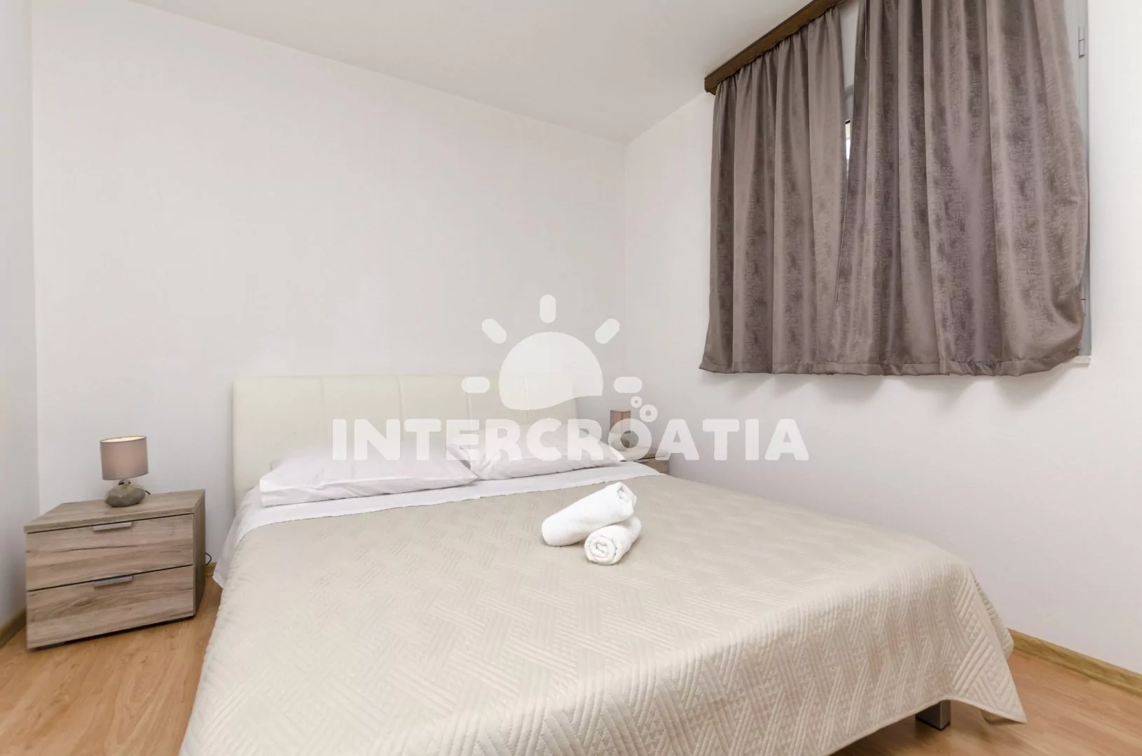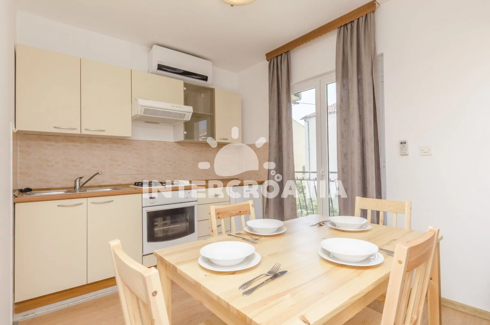 Vzdálenosti: Moře 250 m, pláž (oblázková a větší kamení) 250 m, obchod 60 m, centrum 150 m, pošta 150 m, lékárna 130 m, zdravotní středisko 1300 m, restaurace 200 m, směnárna 130 m, banka 200 m, bar 250 m, půjčovna kol 250 m, půjčovna motorových člunů 230 m, potápěčský klub 650 m, tenisové kurty 300 m, minigolf 370 m, diskotéka 1600 m, čerpací stanice 140 m, veřejná doprava 100 m, přístav 2200 m, trajekt 60 km (Split), letiště 30 km (Split).