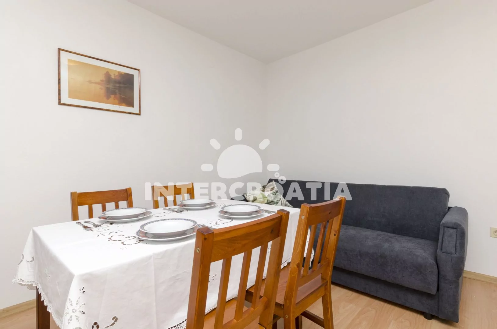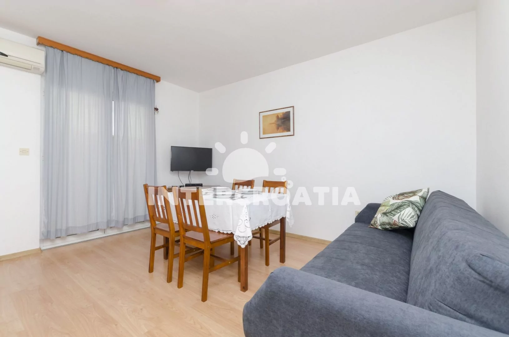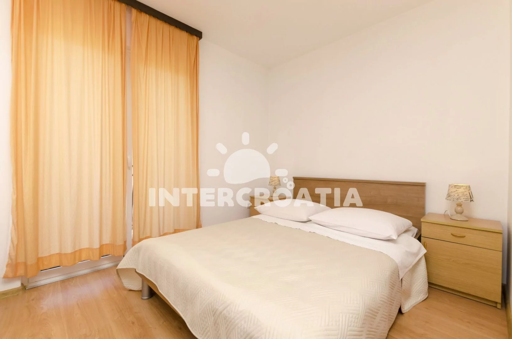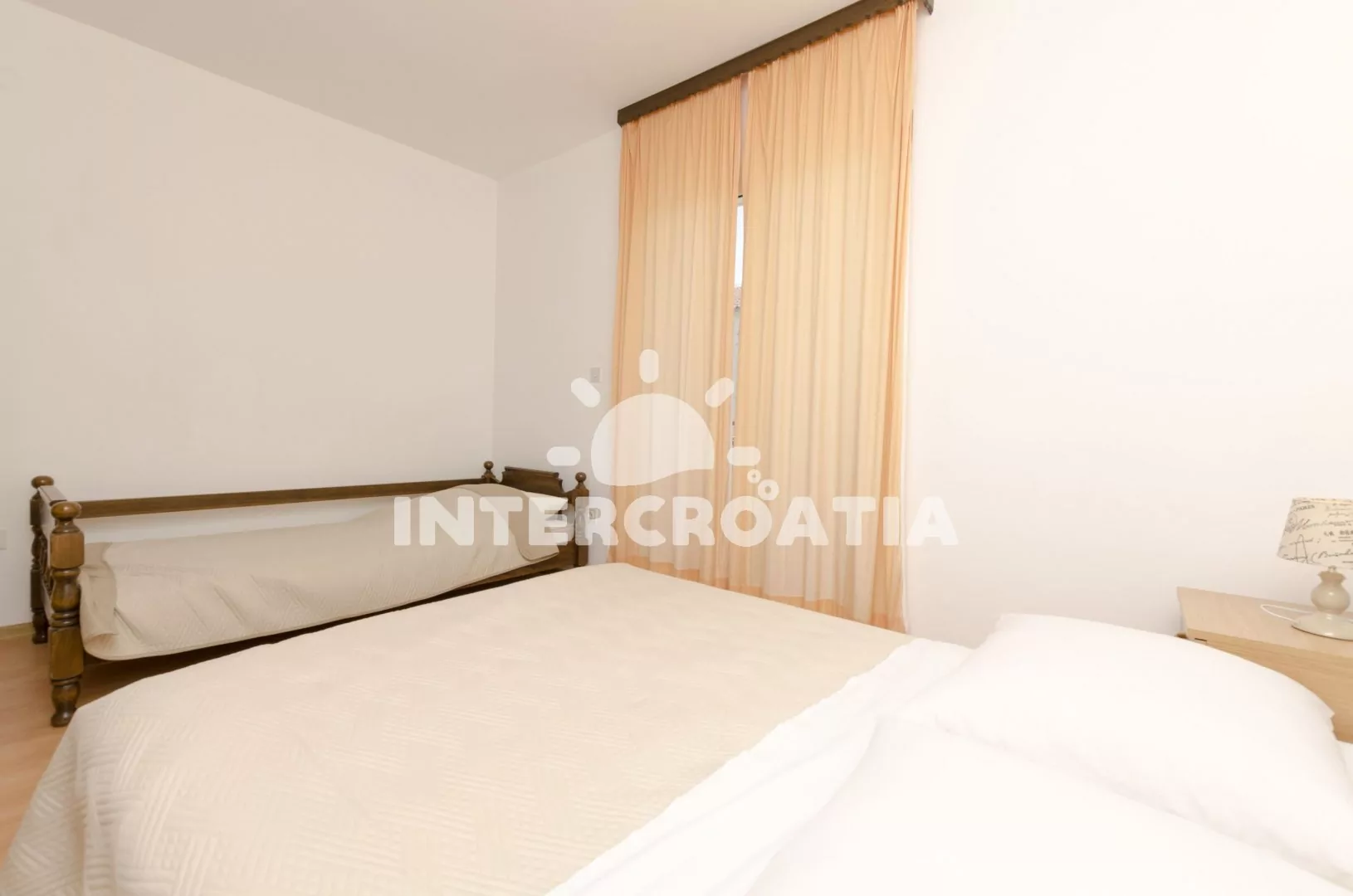 Komfortně zařízený apartmán pro 2 až 3 osoby je umístěn v prvním patře domu. Obývací pokoj spojený s kuchyní. Kuchyňská linka se sporákem, digestoří, troubou, nádobím a lednicí s mrazákem. Obývací pokoj s jídelním stolem pro 4 osoby, rozkládací pohovkou, televizí se satelitním programem, klimatizací a vstupem na balkon. Ložnice s jedním dvoulůžkem a jedním jednolůžkem. Koupelna se sprchovým koutem, umyvadlem a wc. Hosté mají k dispozici parkování u objektu zdarma.