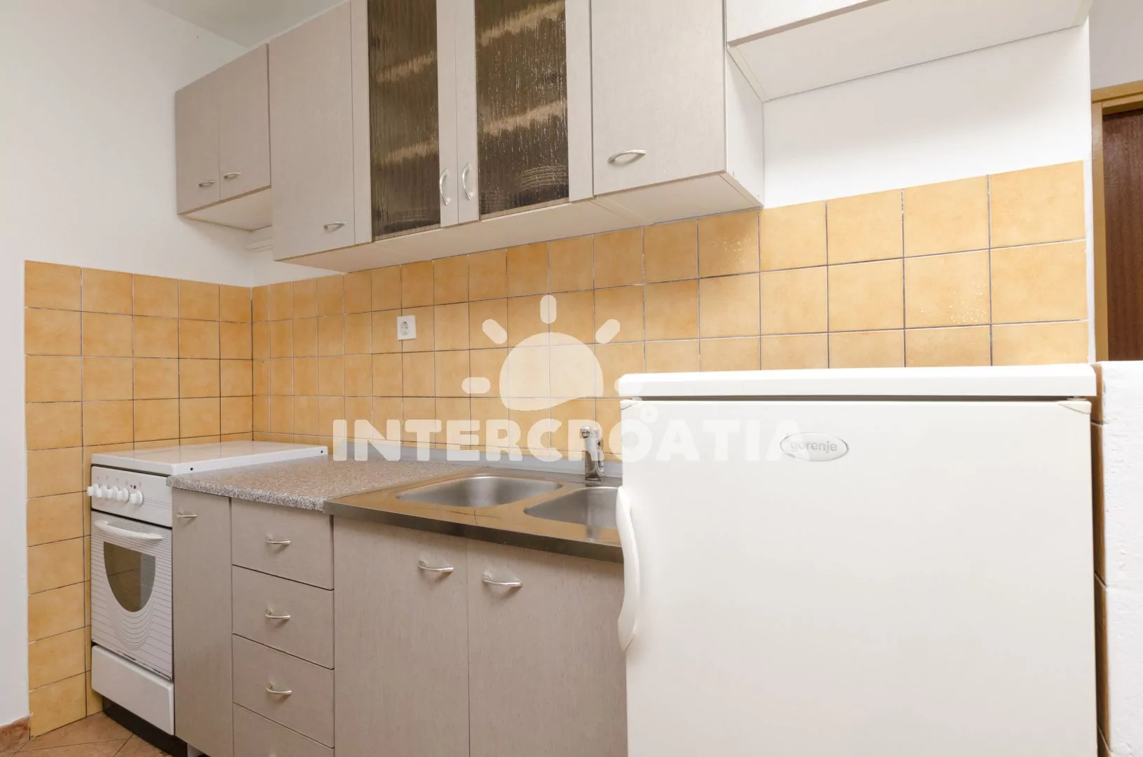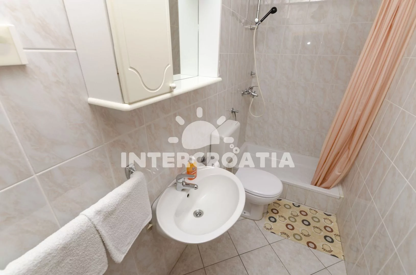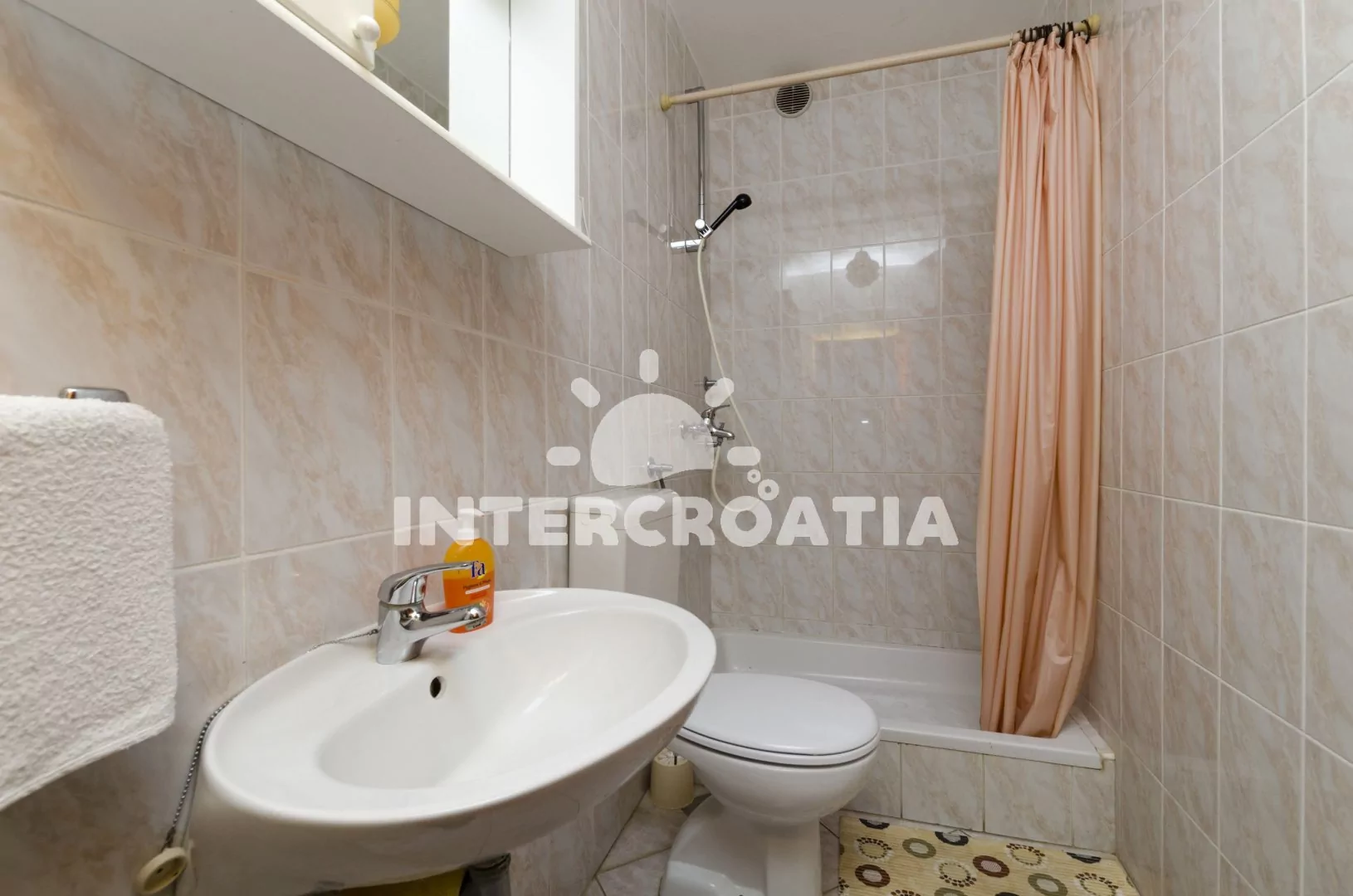 Vzdálenosti: Moře a pláž 190 m (skalnatá), hlavní oblázková pláž 700 m, centrum, půjčovna kol, tenis 630 m, restaurace, potápění 600 m, veřejná doprava 625 m, minigolf 650 m, pošta, půjčovna motorových člunů 670 m, supermarket, čerpací stanice 680 m, směnárna 700 m, banka 720 m, bar 125 m, lékárna