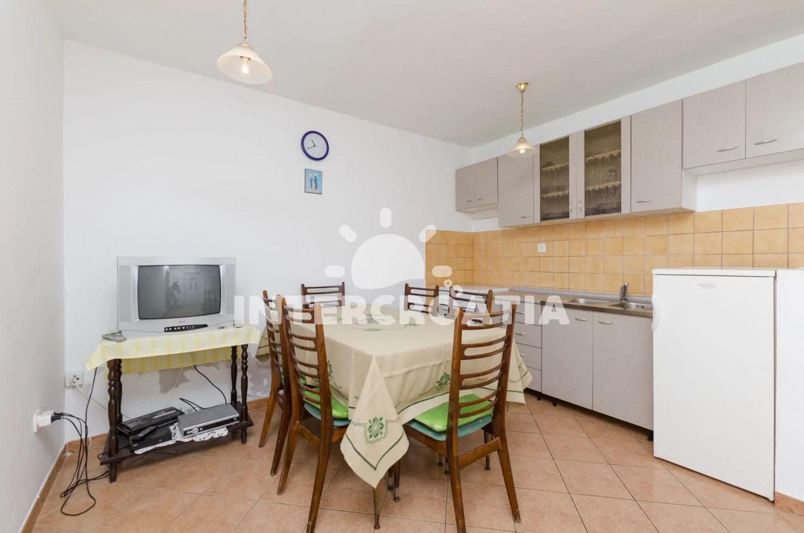Apartmán pro 4 osoby se nachází v přízemí. Obývací místnost je spojena s kuchyní. Kuchyňská linka se sporákem, troubou, nádobím a lednicí s mrazákem. Obývací část s jídelním stolem pro 6 osob a…
