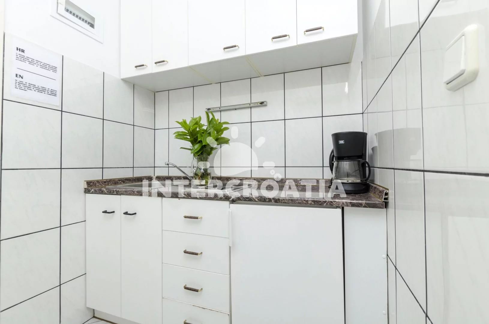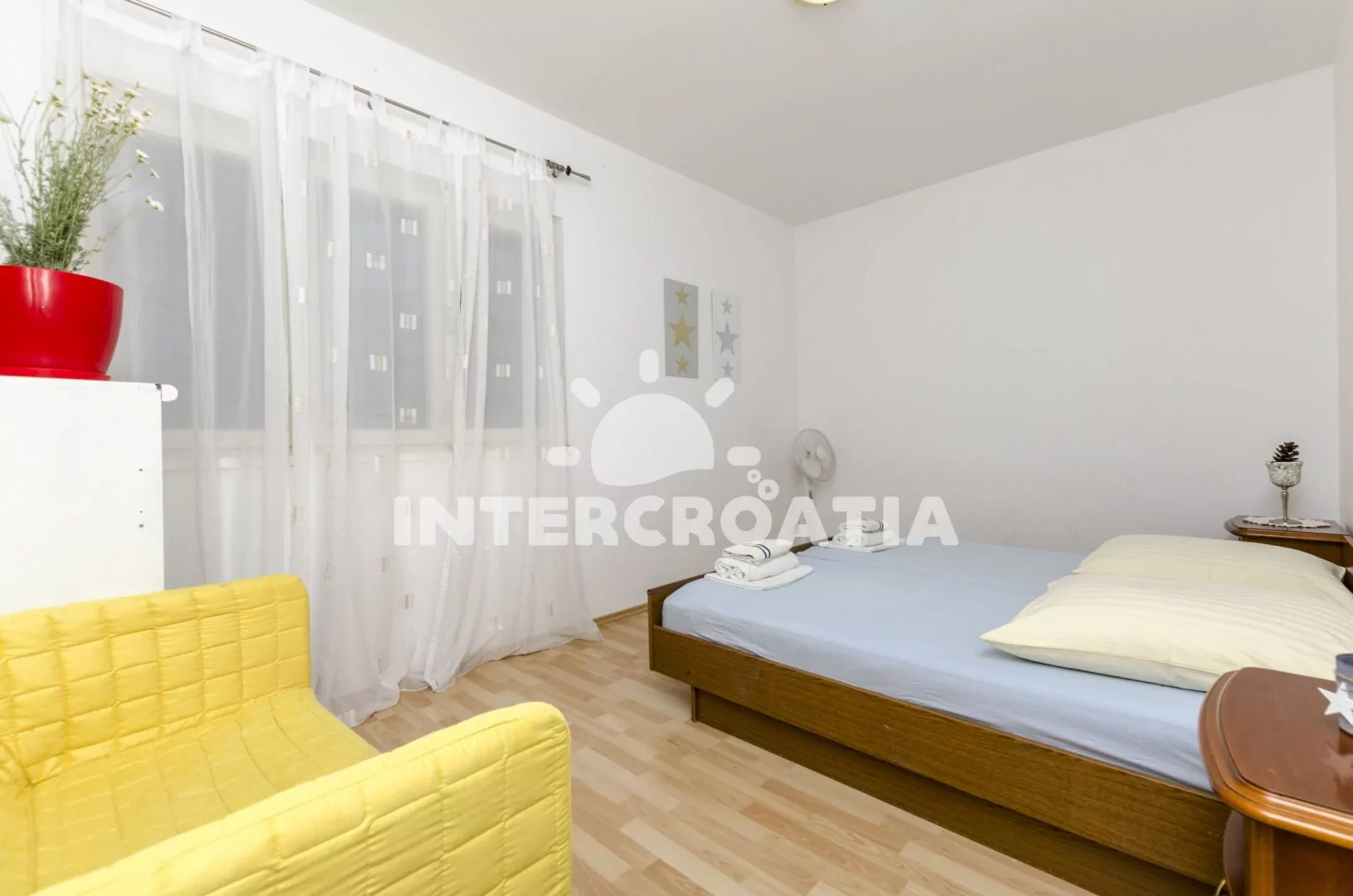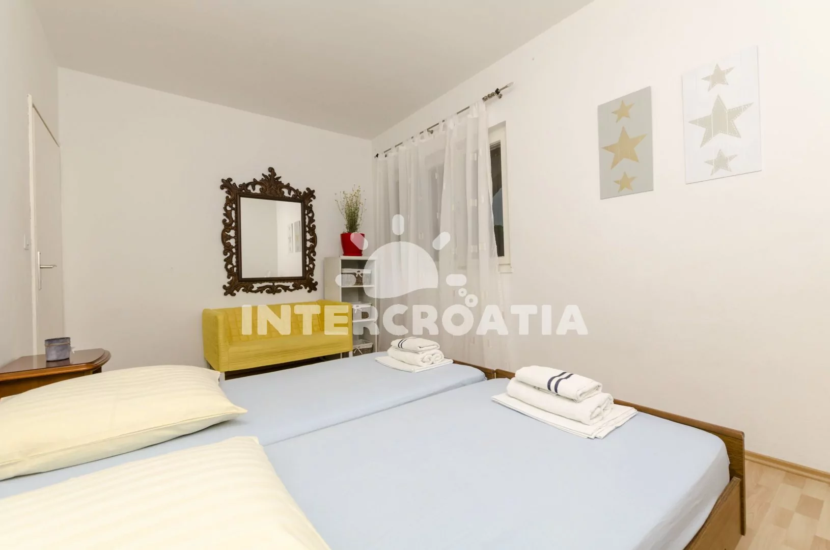 V Severní Dalmácii, 7,7 km severně od rybářské osady Rogoznica a 12,6 km jihozápadně od malebné destinace Grebaštica. Apartmán leží 500 m pěší chůzí od pláže.