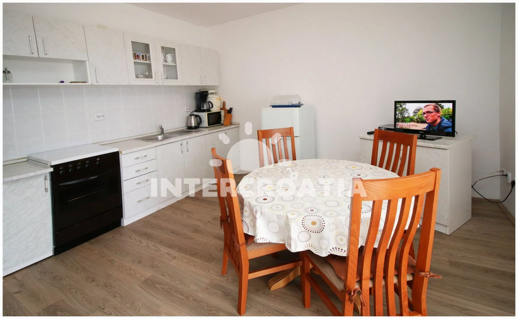 Apartmán s výhledem na moře a balkonem s posezením je vhodný pro 4 osoby, nachází se v přízemí vilky. Obývací pokoj je spojený s kuchyní. Kuchyňská linka se sporákem, troubou, rychlovarnou konvicí,…
