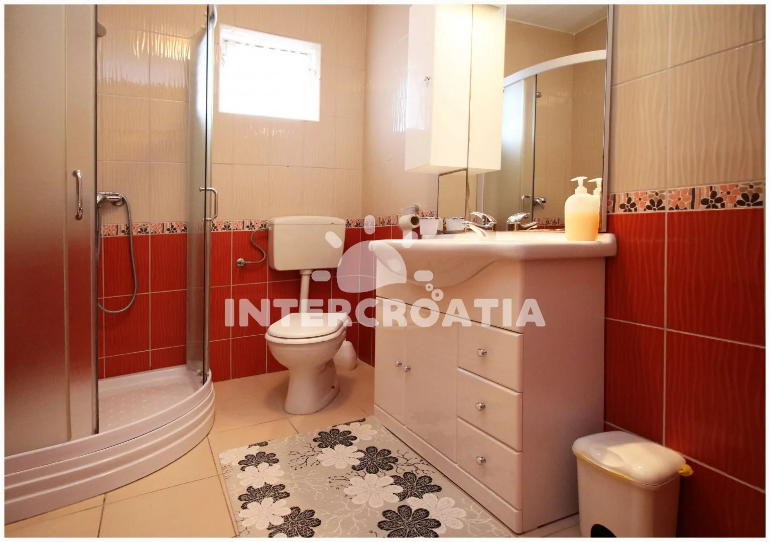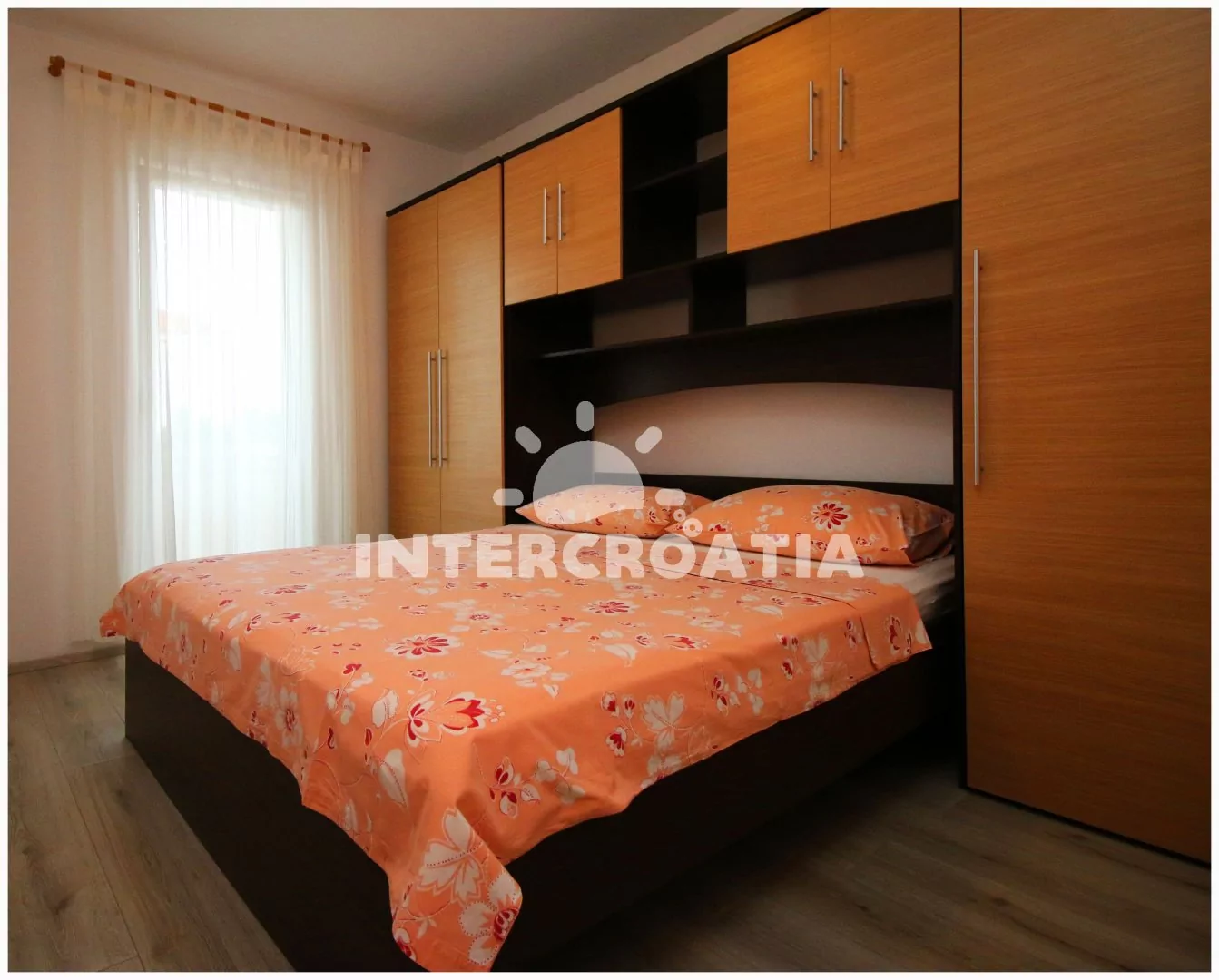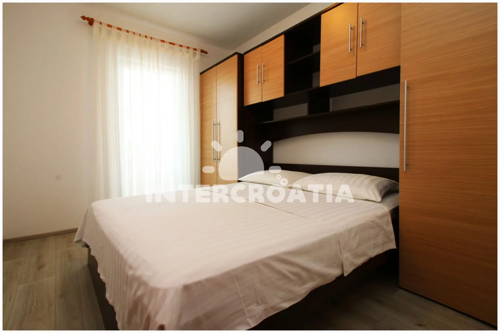 Apartmán s výhledem na moře a balkonem s posezením je vhodný pro 6 osob, nachází se v prvním patře vilky. Obývací pokoj je spojený s kuchyní. Kuchyňská linka se sporákem, troubou, rychlovarnou konvicí, mikrovlnnou troubou, kávovarem, toustovačem, nádobím a lednicí s mrazákem. Obývací pokoj s jídelním stolem pro 6 osob, televizí se satelitním programem, rozložitelnou pohovkou (extra lůžko pro 2 osoby), klimatizací a vstupem na balkon. První i druhá ložnice je vybavena vždy s jedním dvoulůžkem. Koupelna se sprchovým koutem umyvadlem, fénem a wc. Dále samostatné wc s umyvadlem. Hostům je k dispozici parkování u objektu zdarma.