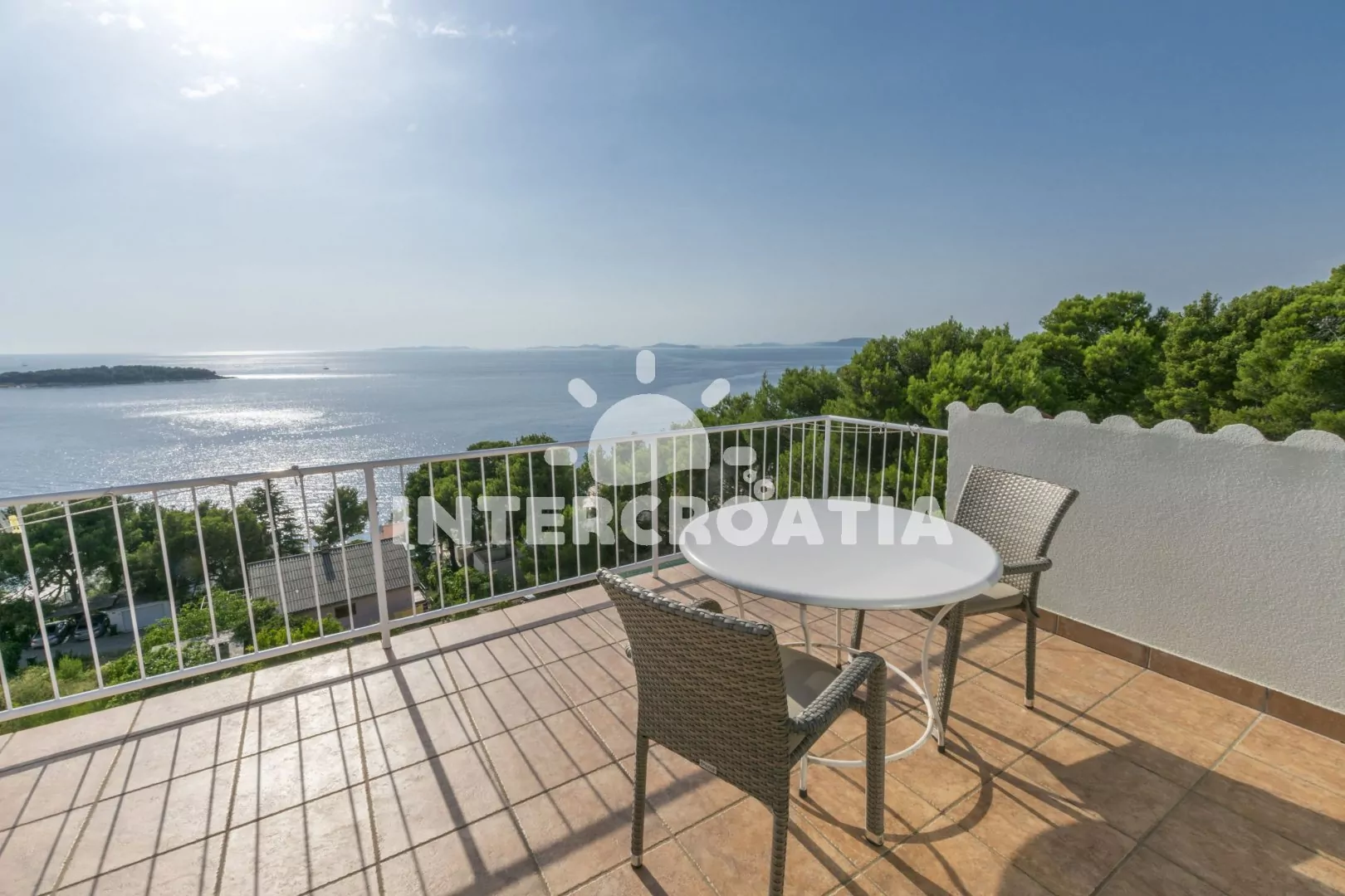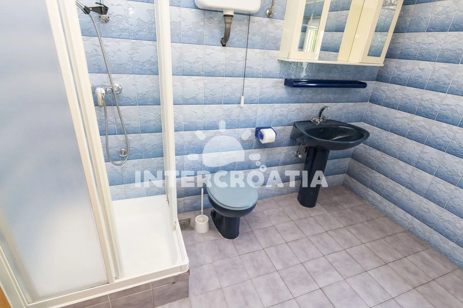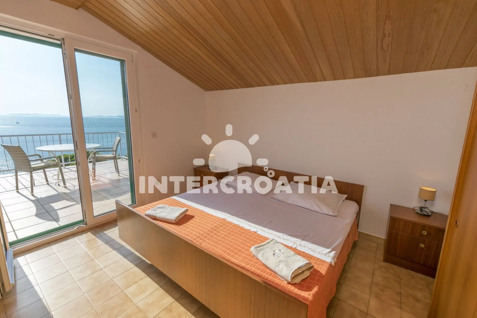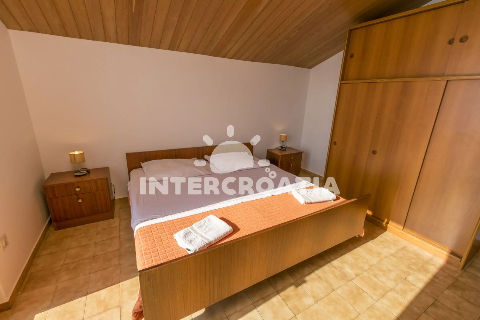 Apartmán s vlastní terasou a výhledem na moře se nachází v podkroví domu a je vhodný pro 2 osoby. Kuchyň je vybavena jídelním stolem pro 2 osoby, kuchyňskou linkou s dvouplotýnkovým sporákem, digestoří, nádobím a lednicí s mrazákem. Ložnice je vybavena jedním dvoulůžkem, televizí se satelitním programem a vstupem na terasu. Koupelna se sprchovým koutem, umyvadlem a wc. Apartmán není fyzicky oddělený od schodiště, ale pokoj (ložnice) má vlastní klíč. Hostům je k dispozici parkování u objektu zdarma.